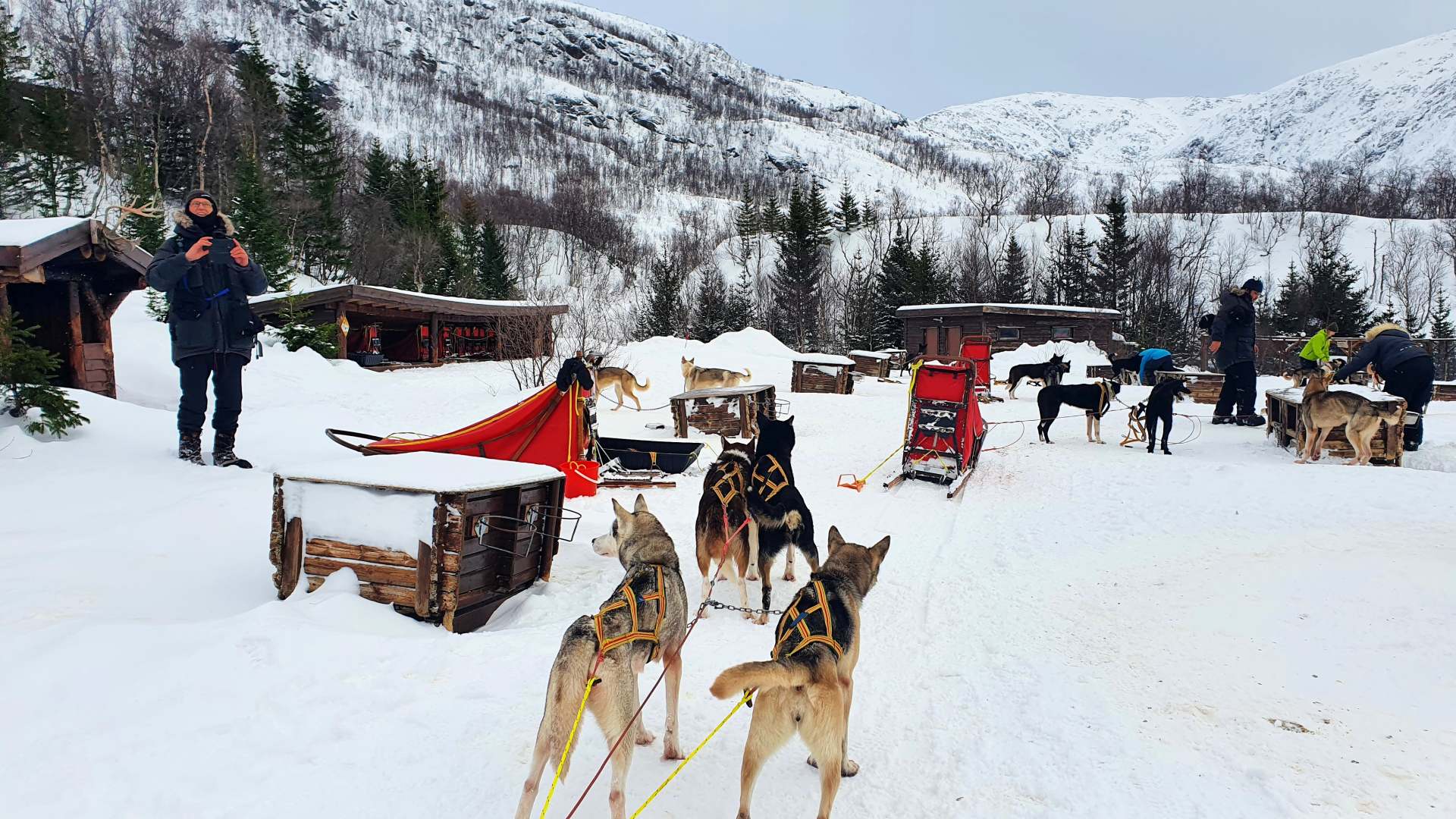 Nur sieben Kilometer entfernt ist der Treffpunkt für die Hundeschlittenfahrt, auf die wir bereits sehr gespannt sind. Es ist für uns die erste unseres Lebens.