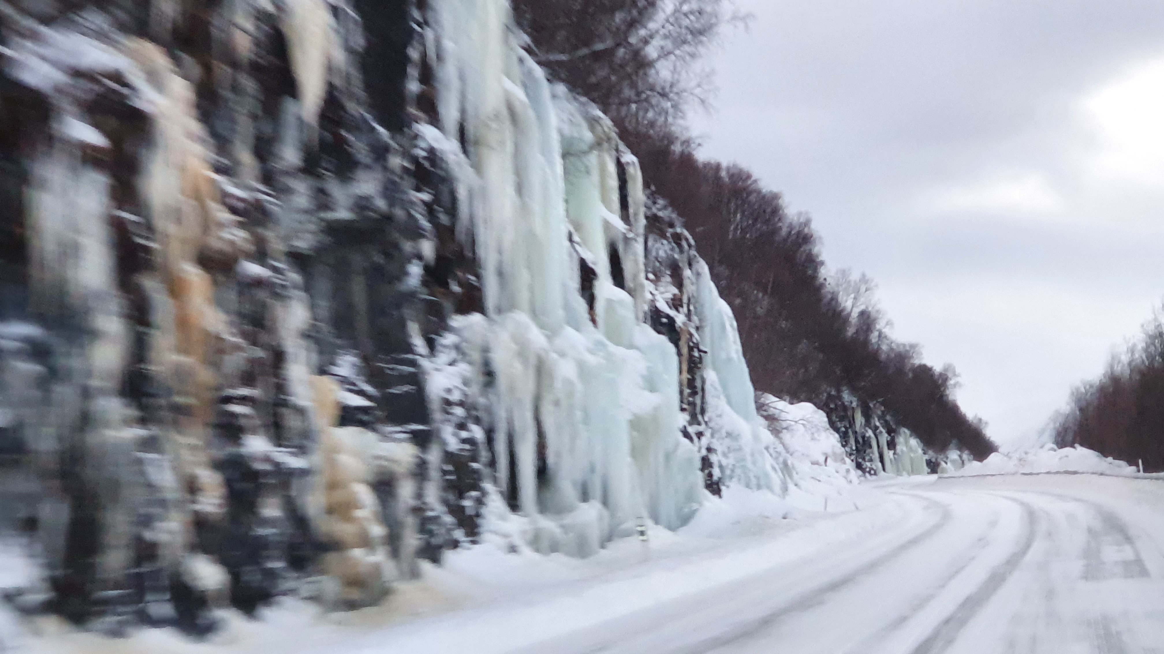 Unsere Tour geht mit der Rückkehr auf die 862 weiter. Teils wunderschöne Felsformationen zeigen sich, doch dann auch wieder Neuschnee, so dass wir nach und nach in eine Schwarz-Weiß-Welt eintauchen.