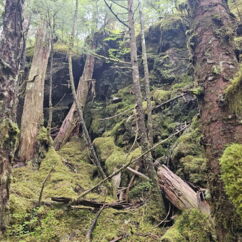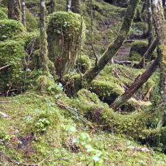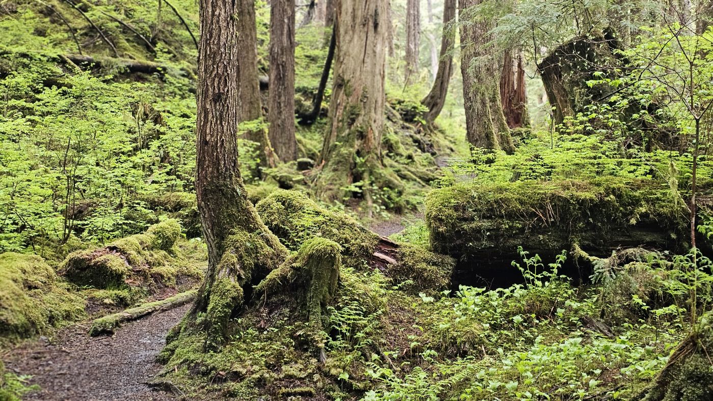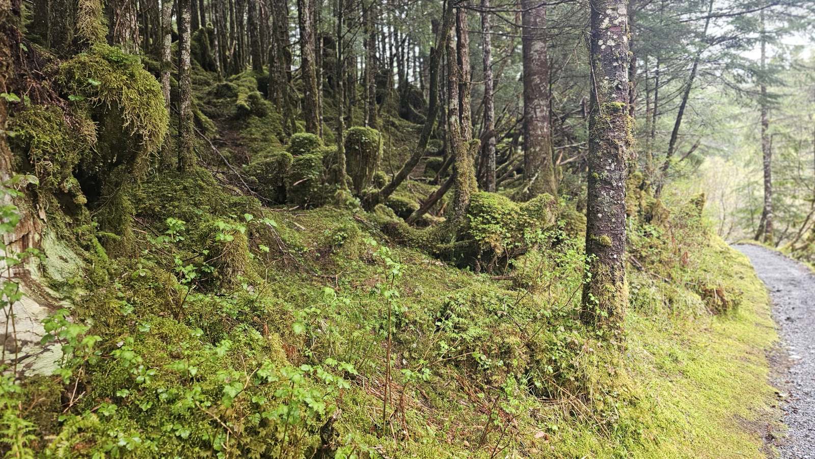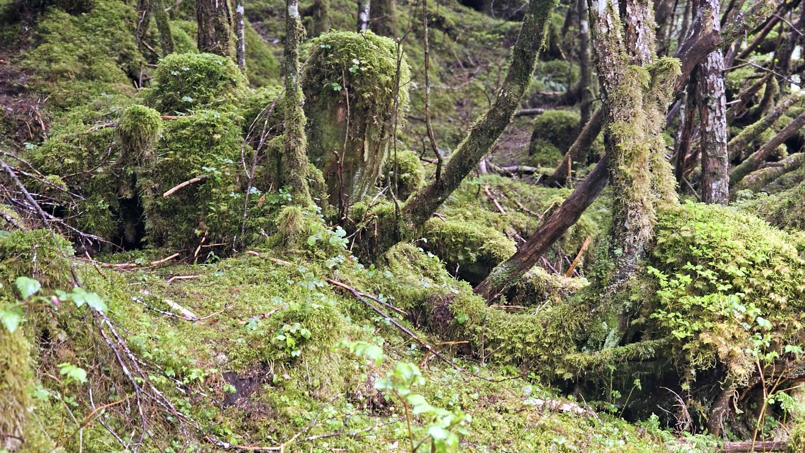 Der Einstieg in den Wanderweg ist geradezu zauberhaft. Ein Schritt ist noch Asphalt, der nächste Schritt ist Regenwald. Bäume und Boden sind wie im Märchen mit Moos ummantelt und kleinste Pflanzen, Pilze und Farne besiedeln Baumstümpfe und Äste. Herr der Ringe, Bären, Elfen, Trolle, amazing - solche Stichworte fallen einem unweigerlich ein.