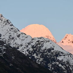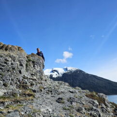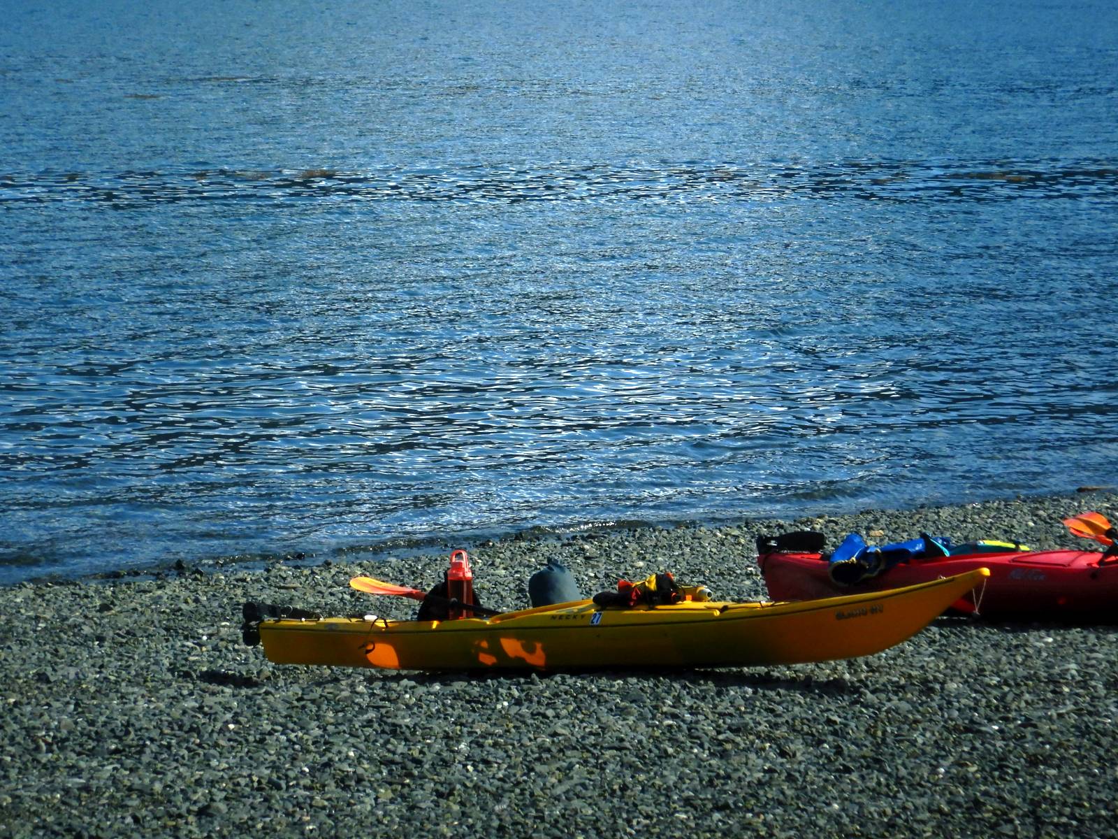 Vor der Rücktour wird an einem Strand nach 1,5 Stunden gepicknickt und wir klettern eine zeitlang am Ufer herum. Das Wetter ist traumhaft und das Gebirgspanorama mit den schneebedeckten Gipfeln atemberaubend.