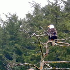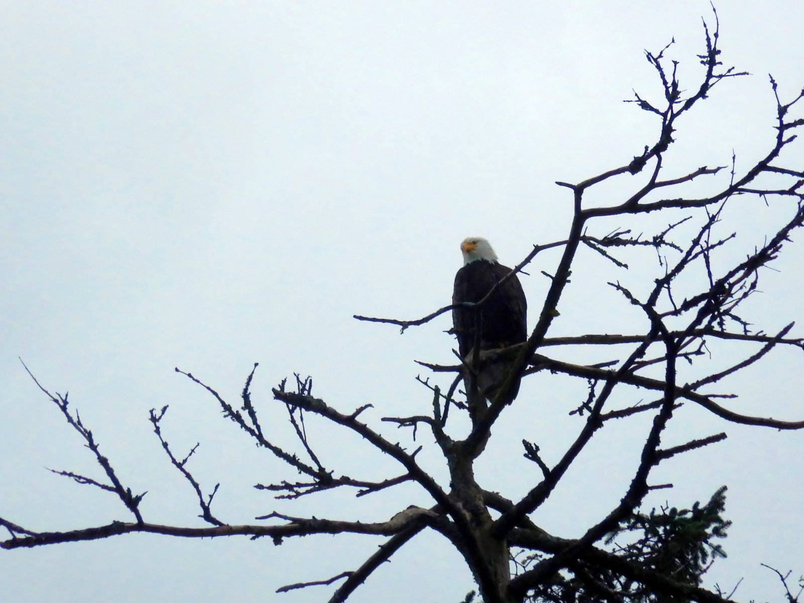 Trotz Touristenmoloch gleich hinter unserem Rücken, können wir nach wenigen Metern einen Weißkopfseeadler betrachten, der über uns in einem Baum sitzt. Auch ein Seeotter ist bald danach zu entdecken, er huscht über einen Felsen. Die Guides zeigen uns große Seesteerne, die an den Felsen kleben, essbaren Seetang - schmeckt sehr gut- und erzählen einiges Beeindruckendes über den Tongass Nationalpark. Allein, dass die Bäume hier nur 1 mm pro Jahr wachsen, gibt jedem Baum eine besondere Wertigkeit.