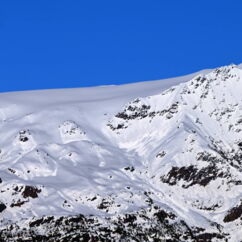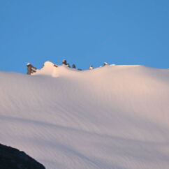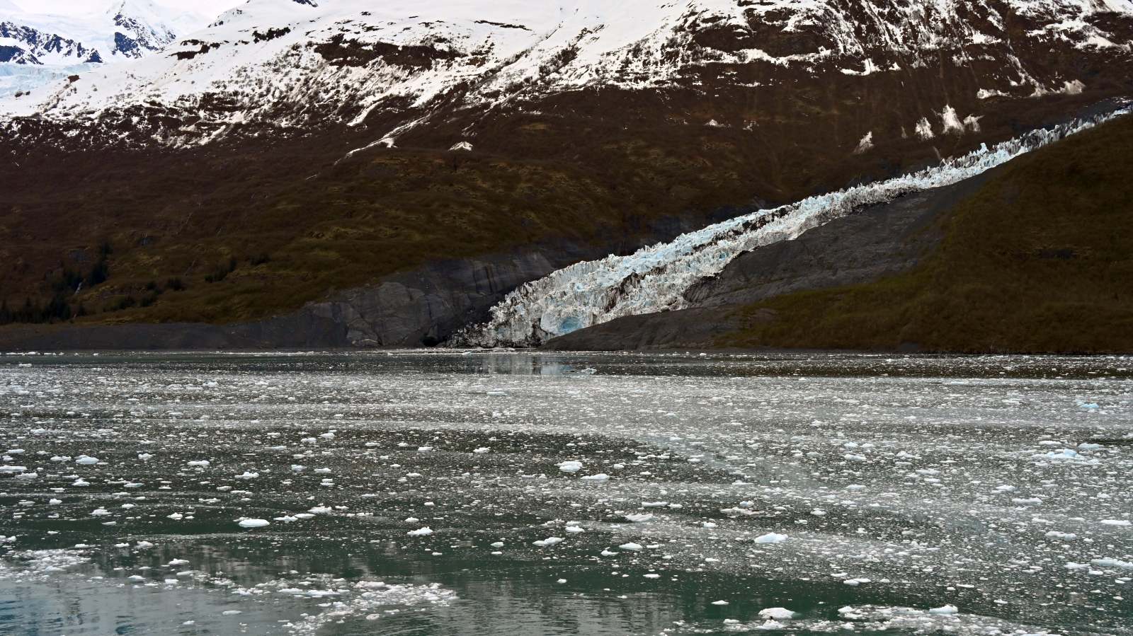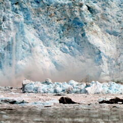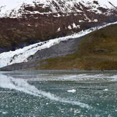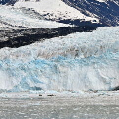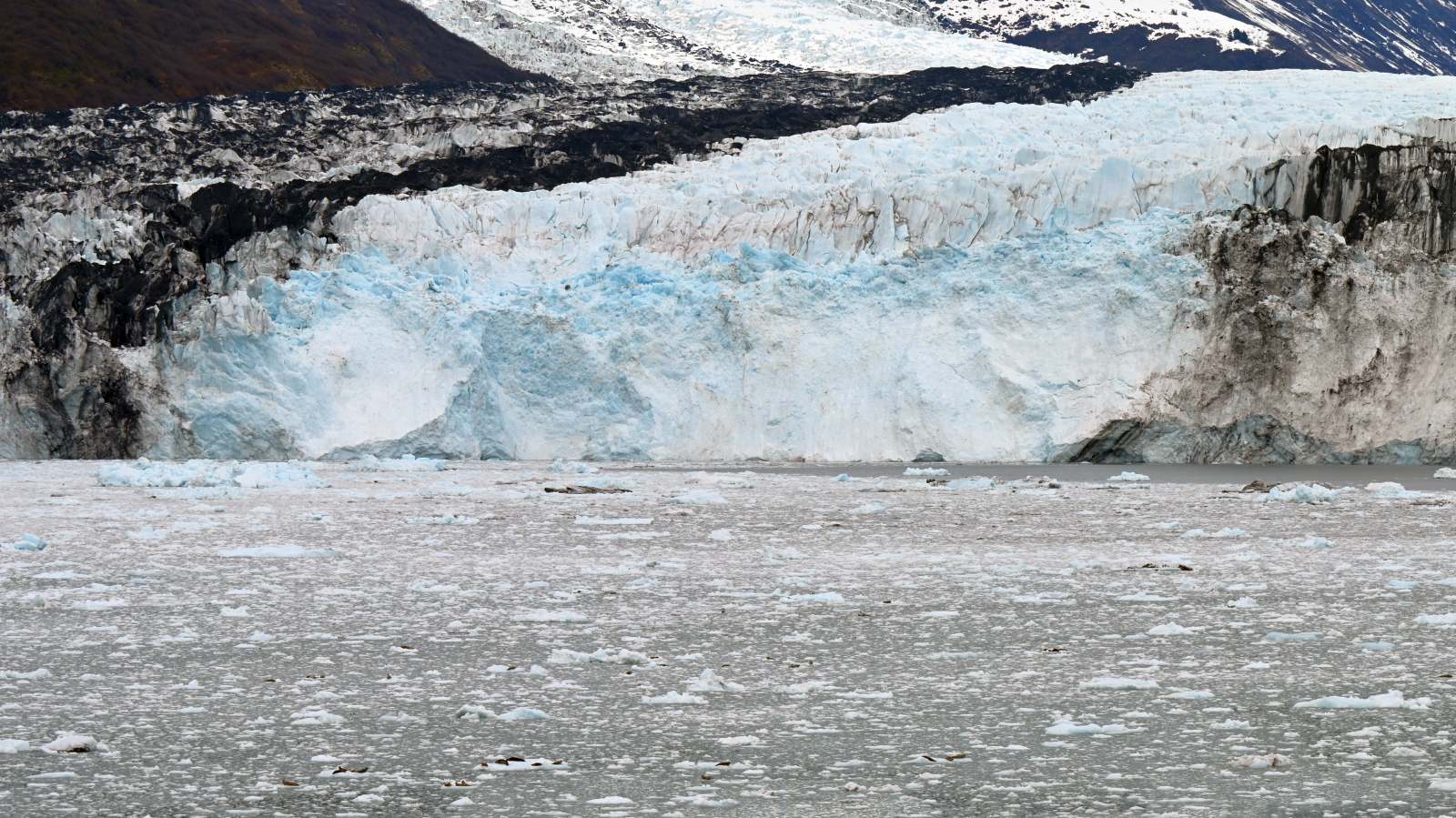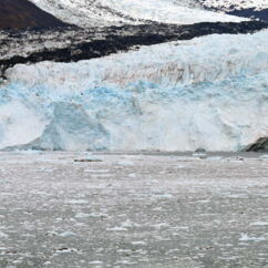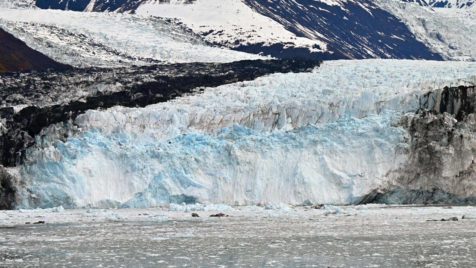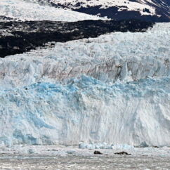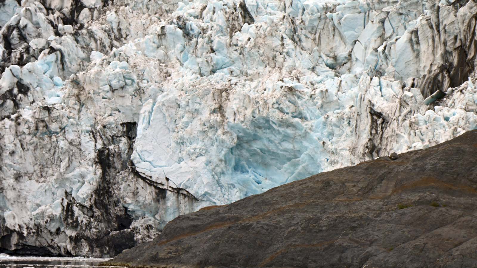 Heute wird es magisch. Wir sind im Harvard-Arm des Collegefjords und die Roald Amundsen geht vor einem riesigen Gletscher vor Anker. Manchmal grollt und knallt es laut in dem Eisfeld und gelegentlich stürzen kleinere Eismassen in die Tiefe: