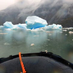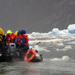 Irgendwann stoppt das Schiff und es beginnt das Ausschiffen der Zodiak-Boote und Kajaks. Heute ist ein Ausflug zum Gletscher auf dem Programm. Wir sind einer späten Gruppe zugeteilt.