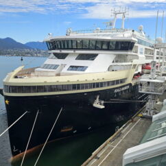 Zugleich genießen die Passagiere ein fast durchgehendes All-Included-Angebot. Im Hauptrestaurant gibt es ein Frühstücks- und Mittagsbüfett, die keine Wünsche übrig lassen. Abends ein 3-Gänge-Menü im 5-Sterne-Charakter und außerhalb der Öffnungszeiten lässt sich der Appetit im Zweitrestaurant stillen mit Kleinigkeiten wie verschiedenen Burgern, Hot-Dogs, wahlweise mit regionaler Wurst, Lamm oder Lachs und so weiter. Wein, Kaffee, Bier und Säfte sind überall selbstverständlich. In der Explorer Lounge auf Deck 10 kann man sich in bequeme Sessel lümmeln und hinter den Panoramafenstern die Landschaft an sich vorüberziehen lassen. Gern mit einem der zehn angebotenen Cocktails, Wein oder Bier. Und das zu jeder Tageszeit.