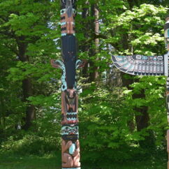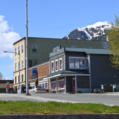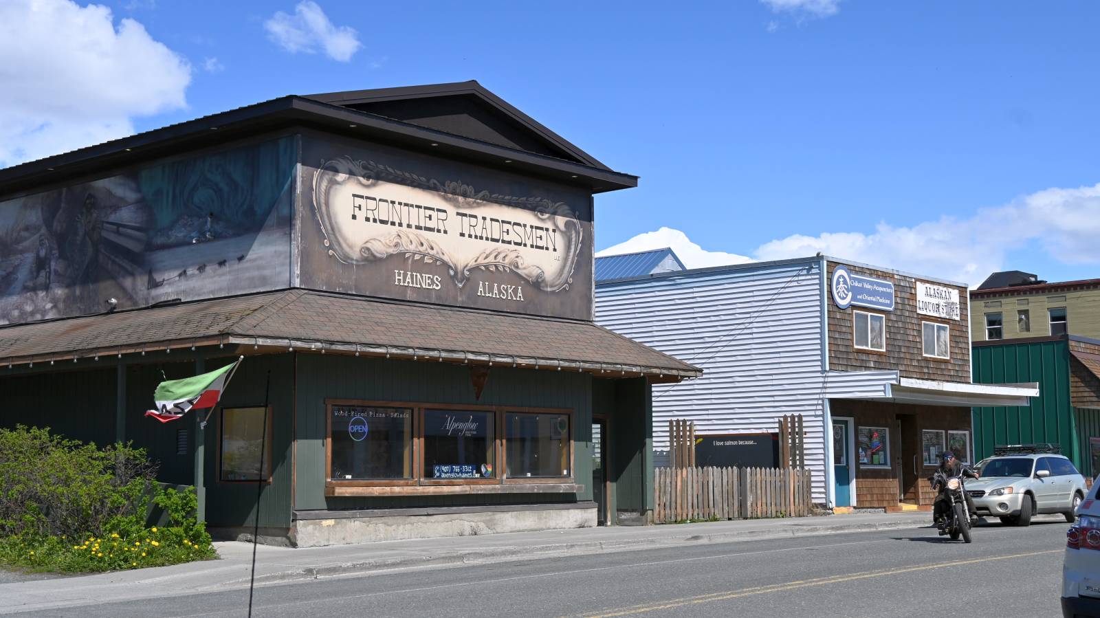 Nach dem Paddeln wandern wir durch den netten Ort, der so ganz anders wirkt als Wrangell. Es kommt uns hier sehr westernmäßig/sehr amerikanisch vor. In einem kleinen Souvenierladen finden wir zwei schöne Glückwunschkarten, einen anderen verlassen wir, nachdem wir das Trumpf-Konterfei im A3-Format im Flur hängen sehen. Das errinnert uns an vergangene deutsche Zeiten.