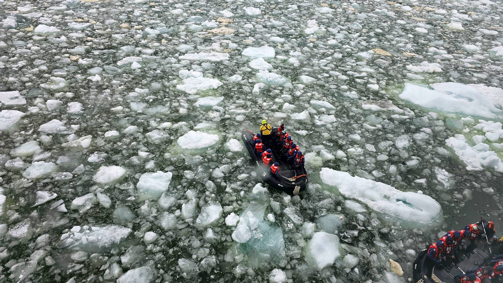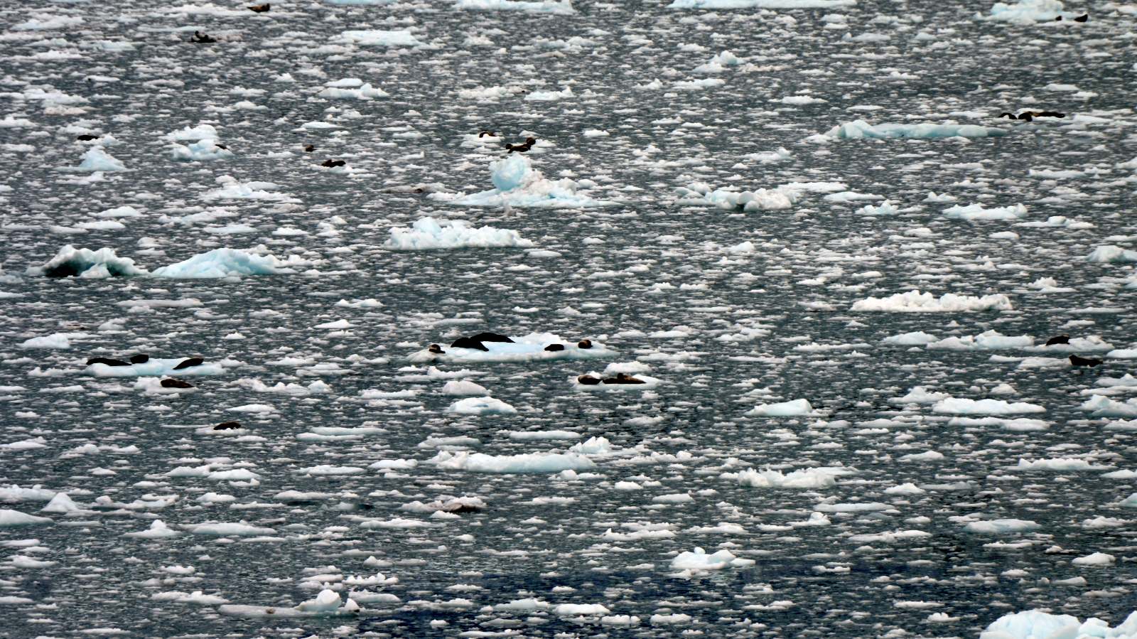 Abermals kurven die Zodiaks zwischen den Eisschollen herum, es tauchen ein paar neugierige Robben auf und dann geht es wieder aufs Schiff. Von der angekündigten großen Vielfalt der Tierwelt ist wieder nichts in Sicht.