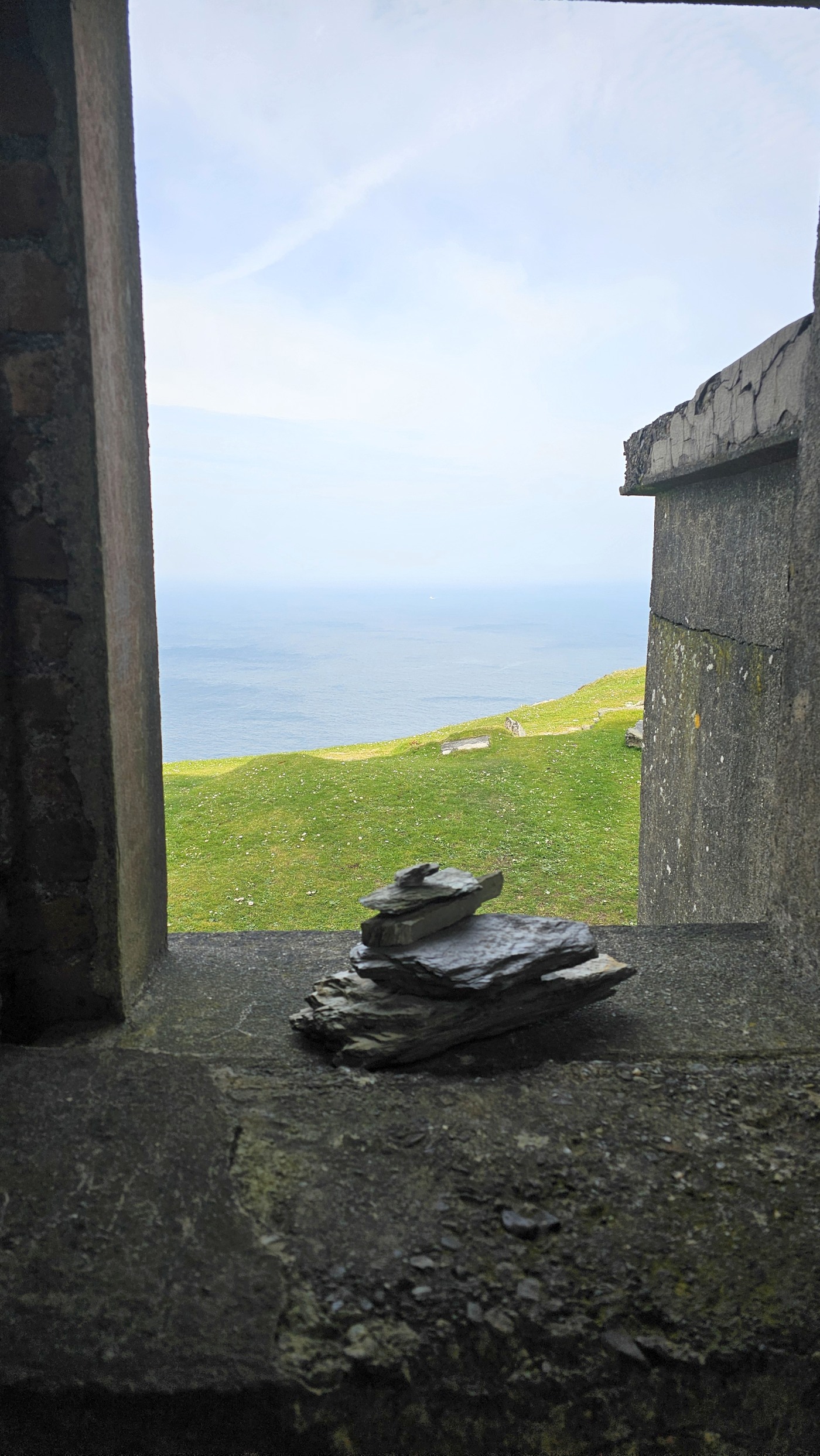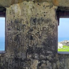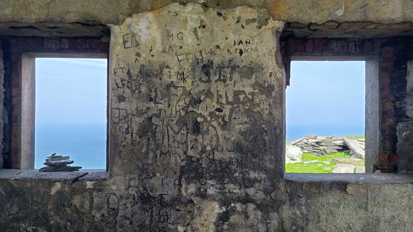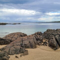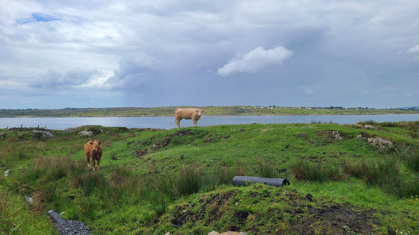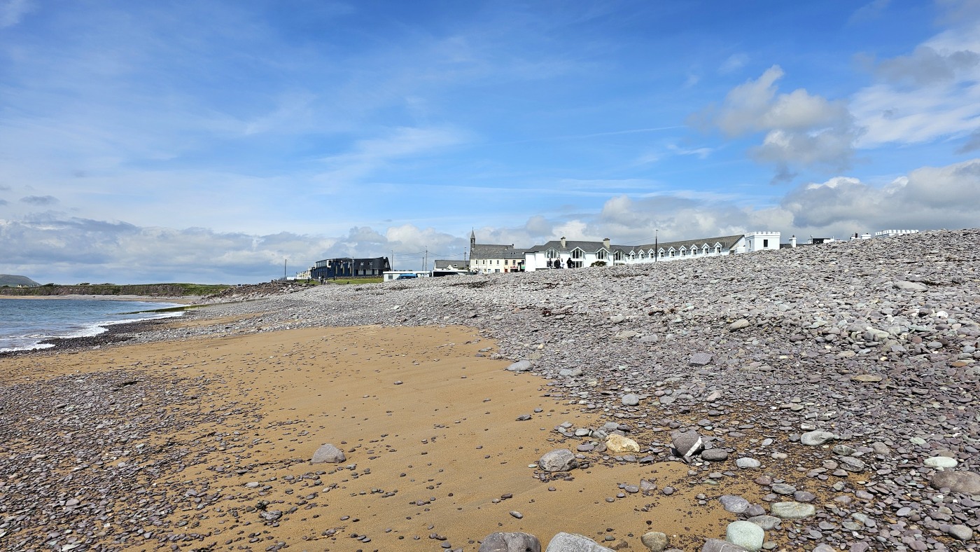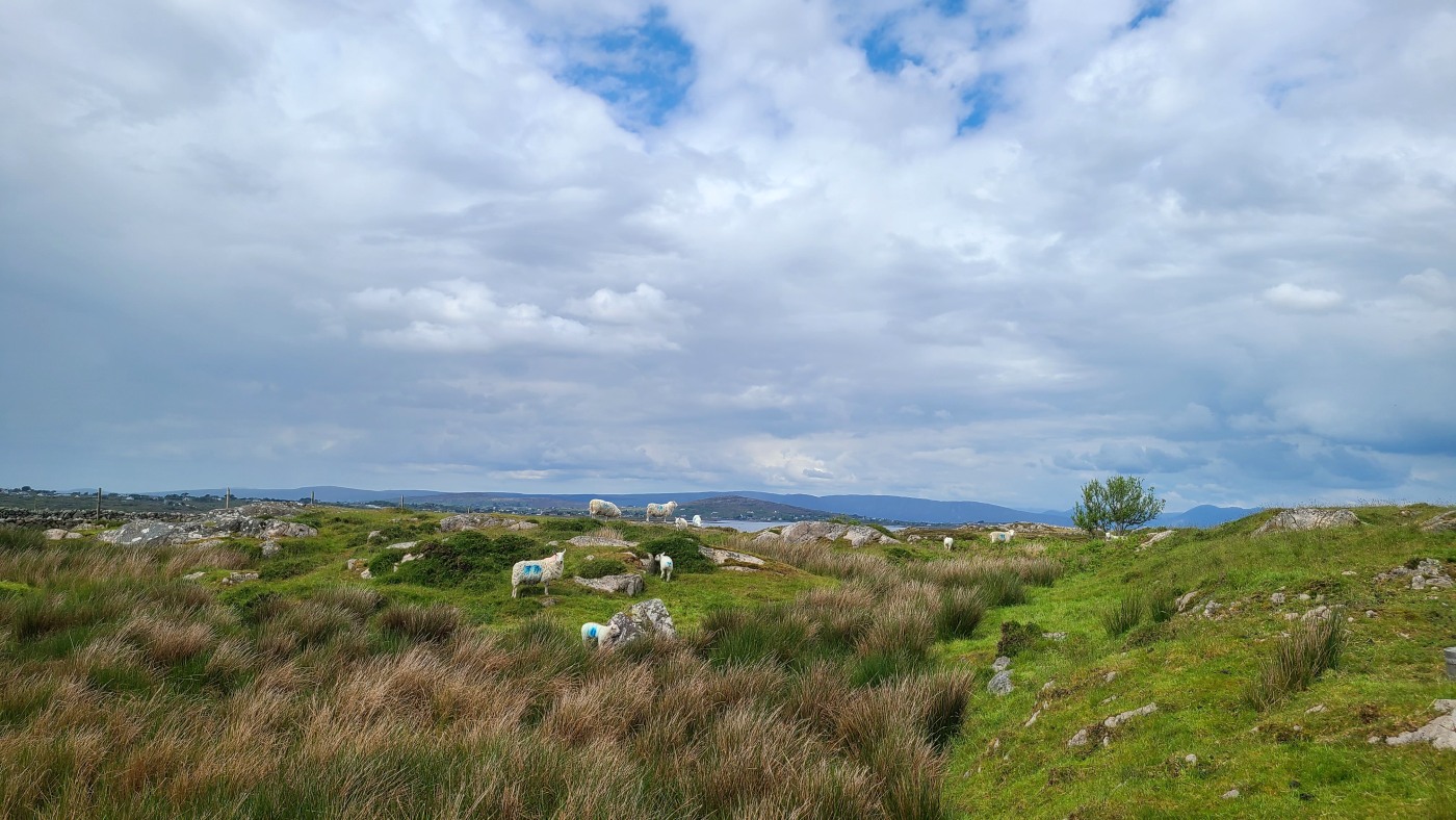 Gestern nahmen wir den Küstenweg bis zur Ortschaft An Cheathtrú Rua und drehten eine große Runde durch Dünen- und Felsenlandschaft. Hier sind alle Namen nicht mehr aussprechbar für uns, die Beschilderungen sind ausschließlich in irischer Sprache.