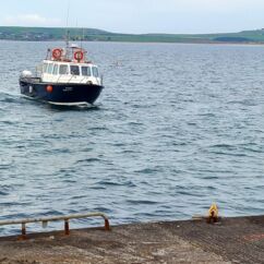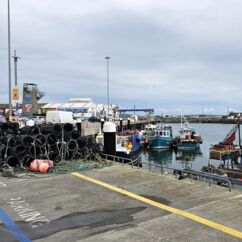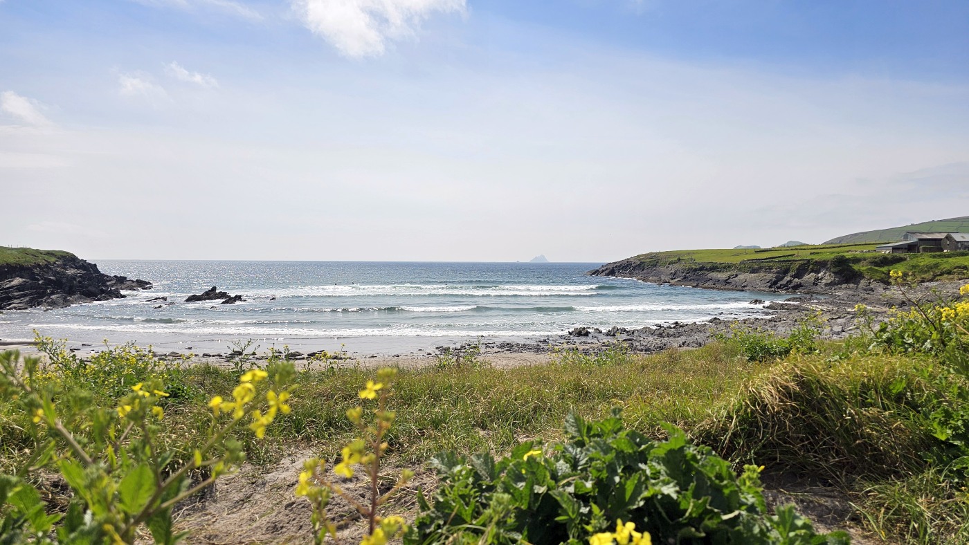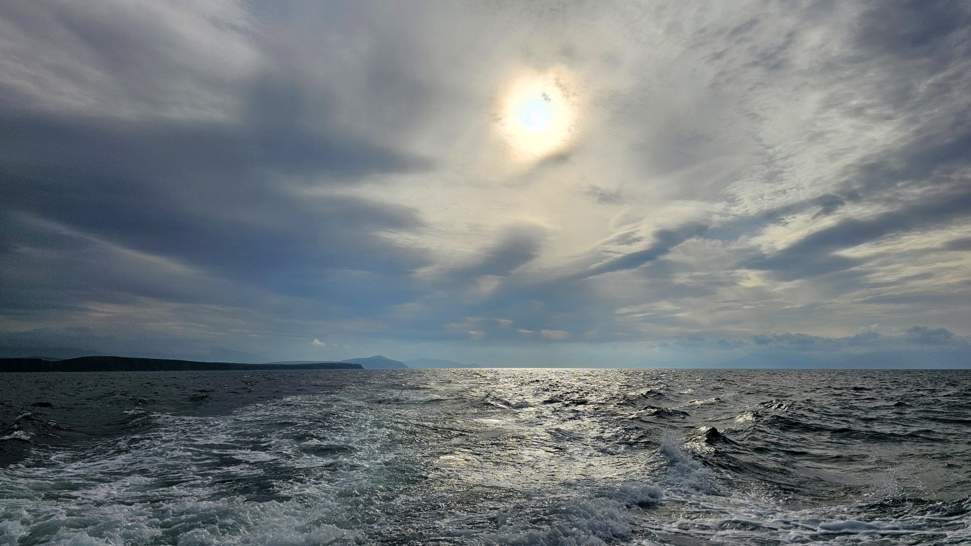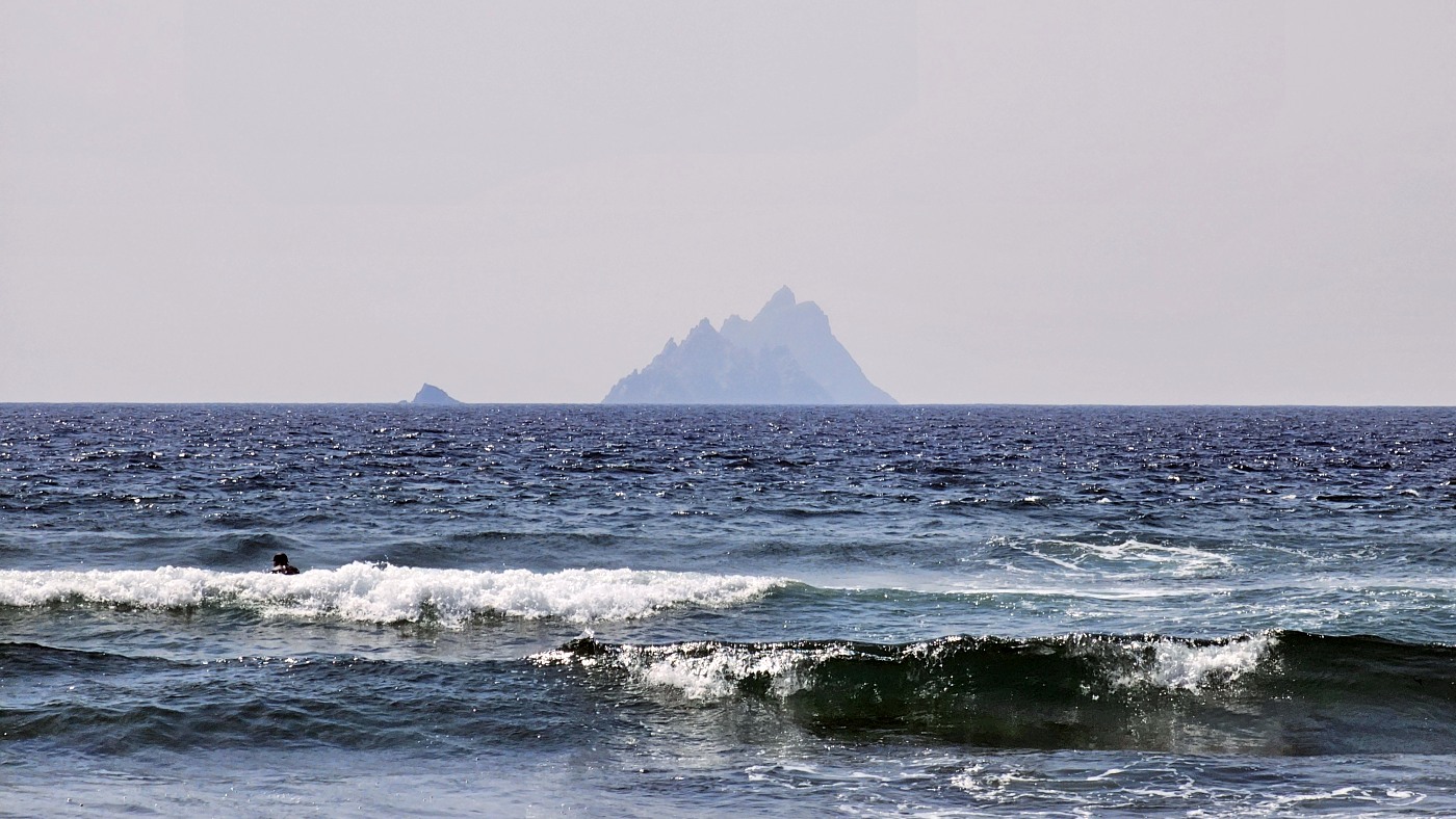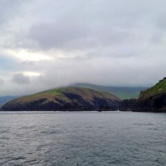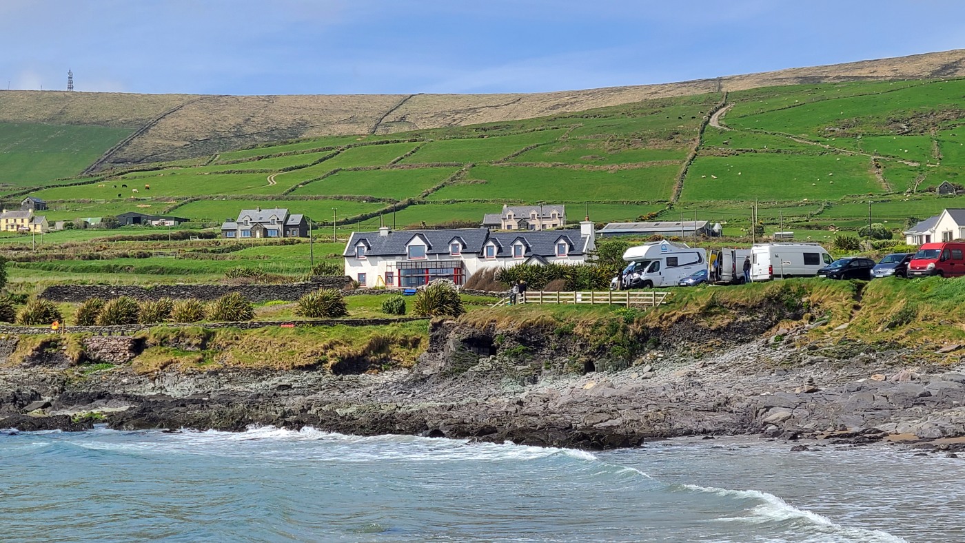 Wir fahren eineinhalb Stunden bis zum Ablegepier in Ventry - das ist fast am Ende der Halbinsel Dingle und steigen mit knapp zwanzig weiteren Passagieren in ein kleines Boot. Der spätere Ausstieg wird etwas umständlicher werden, denn ca 5 Meter abfließendes Tidenwasser während der Fahrt macht das Umsteigen in ein kleines Beiboot erforderlich, um an Land zu gelangen.