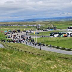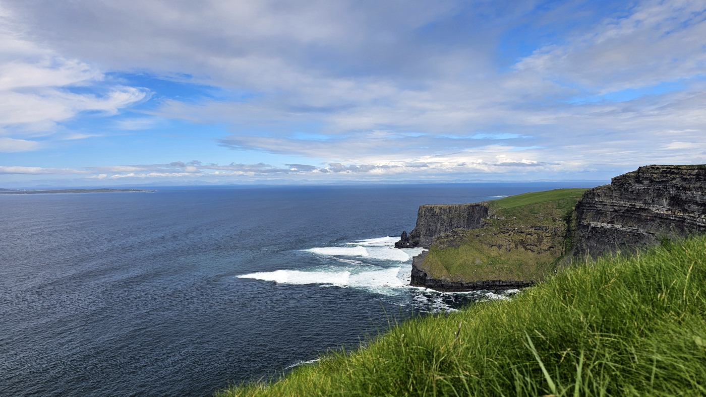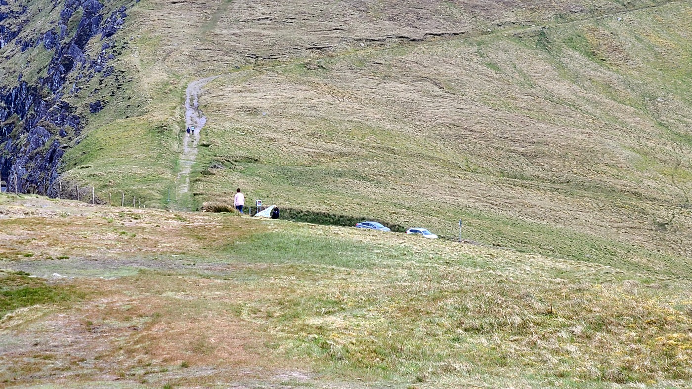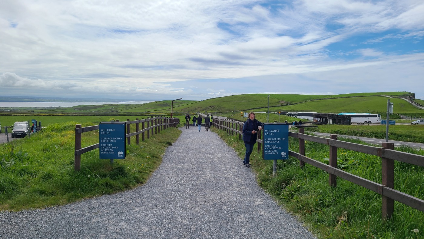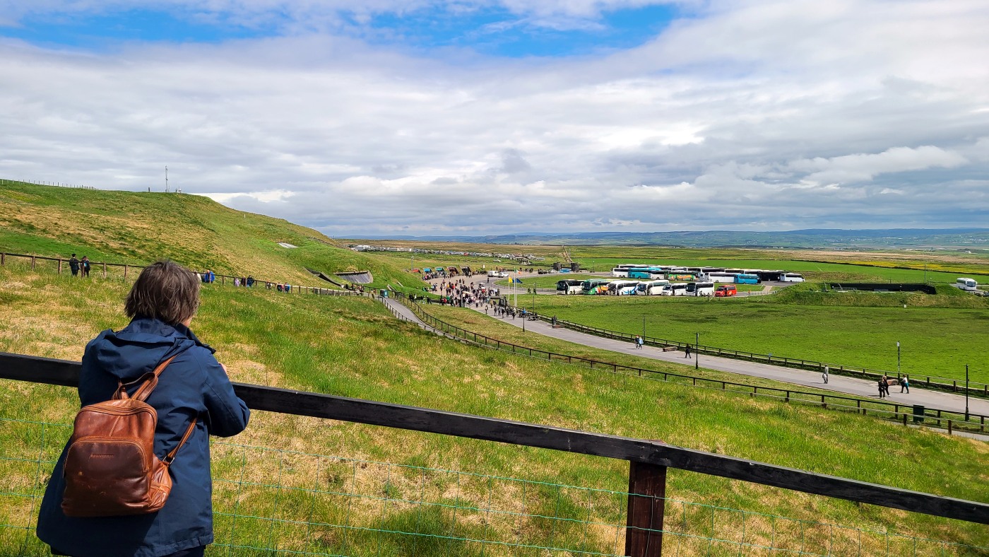 Waren es noch zwei oder drei Kilometer bis zum Ziel? Ich weiß es nicht mehr. Ich sah in der Ferne einen riesigen Fleck, der aus unzähligen Autos zu bestehen schien, vermutete ein Festival oder ähnliches und fragte: "Um Gottes Willen, was ist das denn? Der realistische Fritz grinste und antwortete: Cliffs of Moher und er hatte Recht.