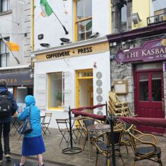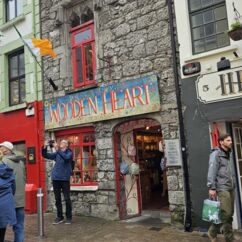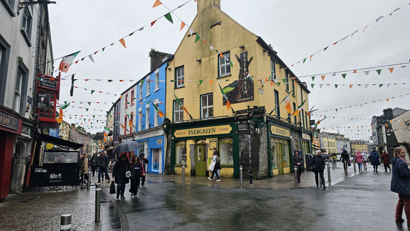 Und noch einmal Stadt: Galway ist nur eine kleine Stadt mit knapp 80.000 Einwohnern, doch Latin Quarter steht dem Dubliner Tempel Bar in Sachen Charme nichts nach. Die Gebäude sind nicht so groß wie in Dublin, doch hier reiht sich - wie in allen kleinen Orten - ein typisch irisches Gebäude ans nächste. Pubs, Giftshops, Irisch woolen market, Restaurants, kunstvolles Graffiti und als besonderes Highlight mehrere Chocolaterien mit so kunstvoll gestalteten Petit fours, Tartes, eindrucksvollen Schokoladenschafen, Trüffeln, frischem Kaffee mit kleinen Mini-Marshmellow als Deko und mehr, dass ich hochachtungsvoll meinen Hut ziehe. Das Design macht hier den Geschmack zur Nebensache.