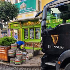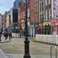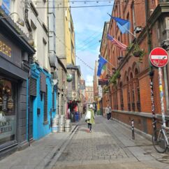 Auf dem Weg zum Moore Lane Market laufen wir über das Gelände des Trinity College. Gern hätten wir uns das angeblich schönste Buch der Welt angesehen, doch der Bereich ist derzeit gesperrt. Ebenso scheitert der Besuch der Markthalle. Ein Schild am Eingang verkündet, dass sie seit 2019 geschlossen ist.