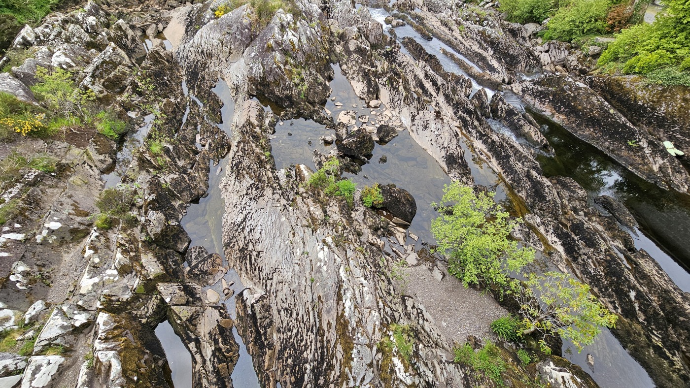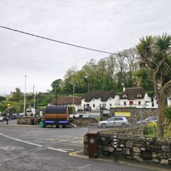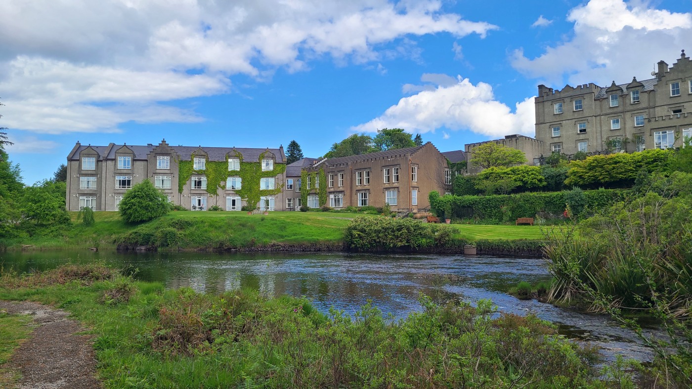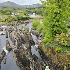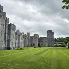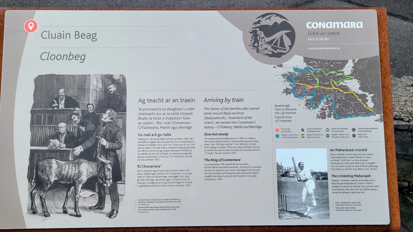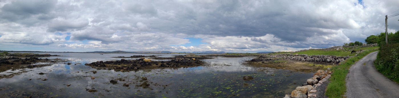 Die Ortschaft Cong liegt an einem See inmitten eines großen Waldgebietes und wir hatten uns vorgestern über Komoot eine neun Kilometer lange Runde ausgesucht. Eine Überraschung gab´s am Ende. Ein elegantes Schild mit Wappen wies darauf hin, dass man nun Privatbesitz betreten würde. Hunde müssten an die Leine, Hinterlassenschaften mitgenommen werden, Wild dürfe nicht gefüttert werden, Müll nicht liegenlassen, usw. Die Liste war lang und enthielt sogar die Aufforderung, angemessene Kleidung zu tragen. Der Weg führte uns uns dann irgendwann aus dem Wald heraus, kamen an zwei Tennisplätzen vorbei und wir landeten im unfassbar großen Schlossparkgelände des Hotels Ashford Castle. Vor dem Eingang Diener in Livree, vor dem Schlossgraben und den zwei Eingangsrundbögen an den Enden der Brücke Bedienstete, ein Hubschrauberlandeplatz und eine gepflegte Rasen- und Gartenanlage, die sicherlich ein Heer von Gärtnern benötigt. Eine Übernachtung mit Frühstück inkl. vorgewärmten Handtüchern, Bettwäsche aus ägyptischer Baumwolle mit Schlosswappen, Obstkorb, Rundumservice und was man sonst so im Leben braucht, kostet hier nur 985 €. Bei dem Ambiente sicherlich ein Schnäppchenpreis ;)