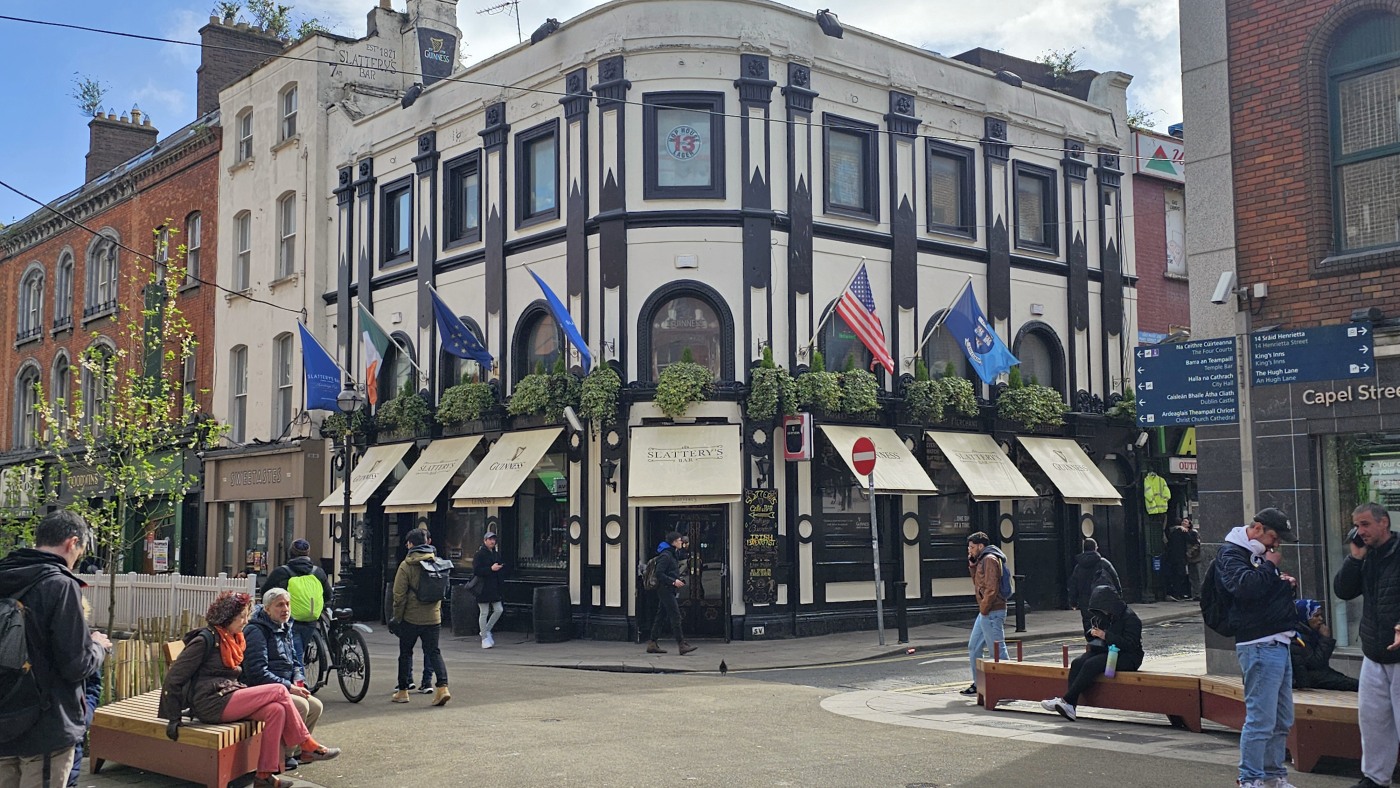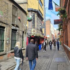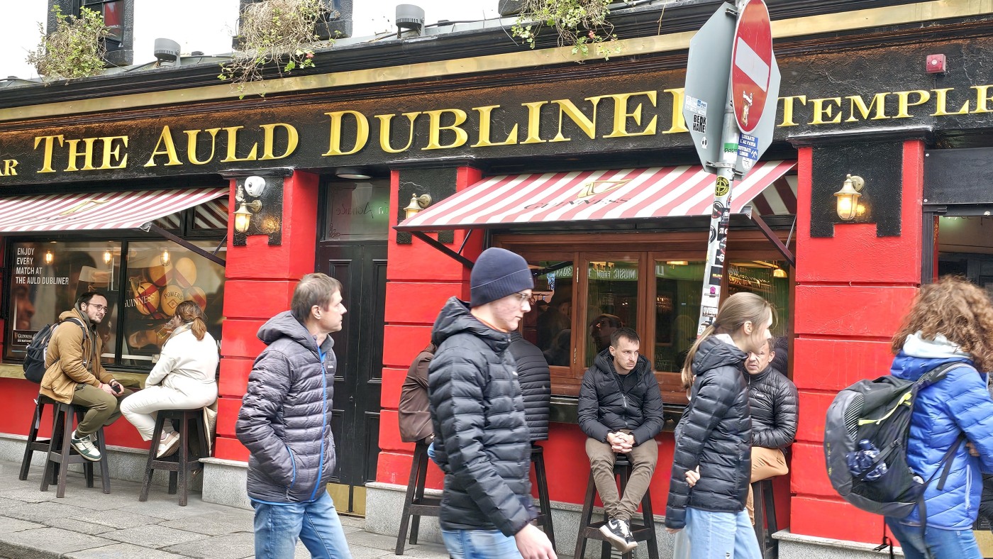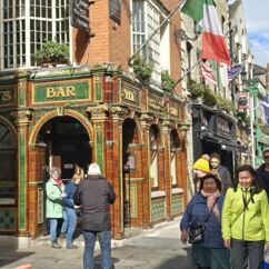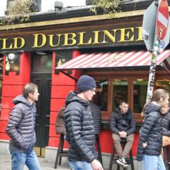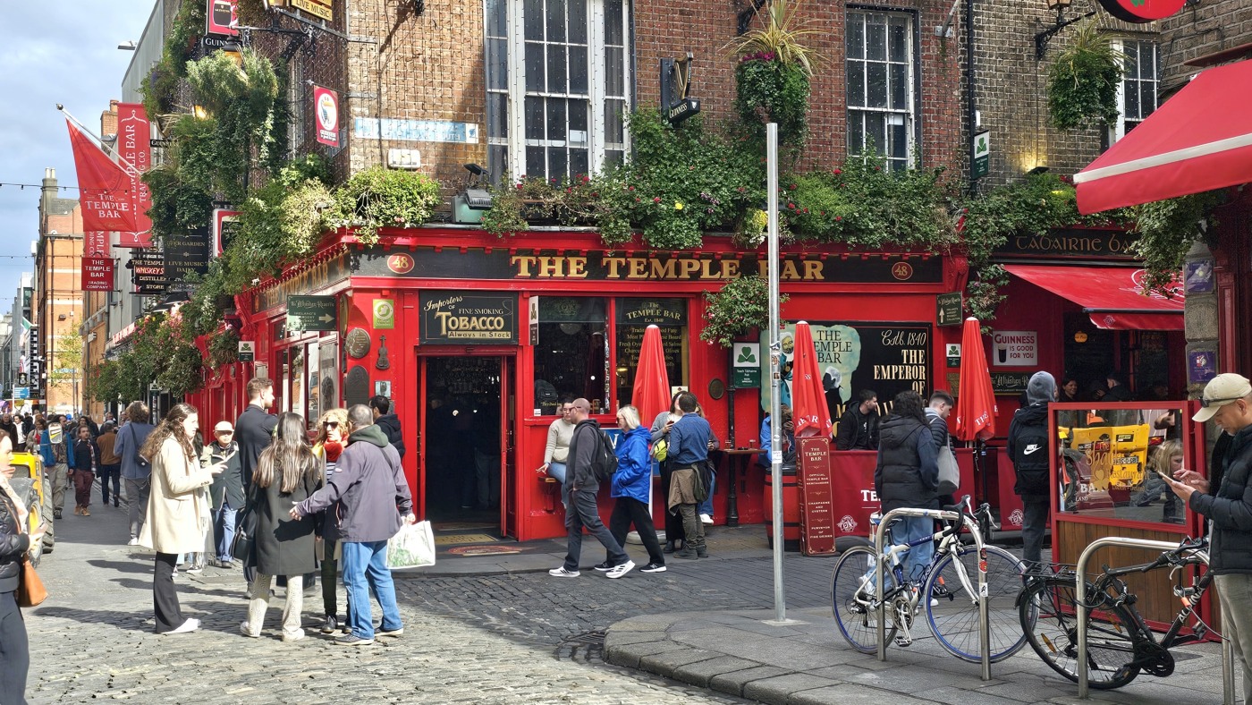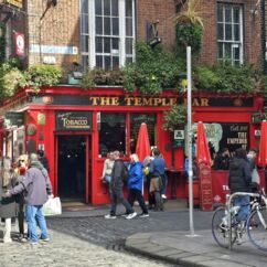 Ganz Tempel Bar ist so charmant, dass alle Touristen magisch davon angezogen werden. Hier reiht sich ein Pub an den nächsten, Musik an jeder Ecke. Die gute Stimmung wird nicht einmal durch Regenschauer getrübt und morbide Details erscheinen nicht hässlich, sie wirken charakterstark.