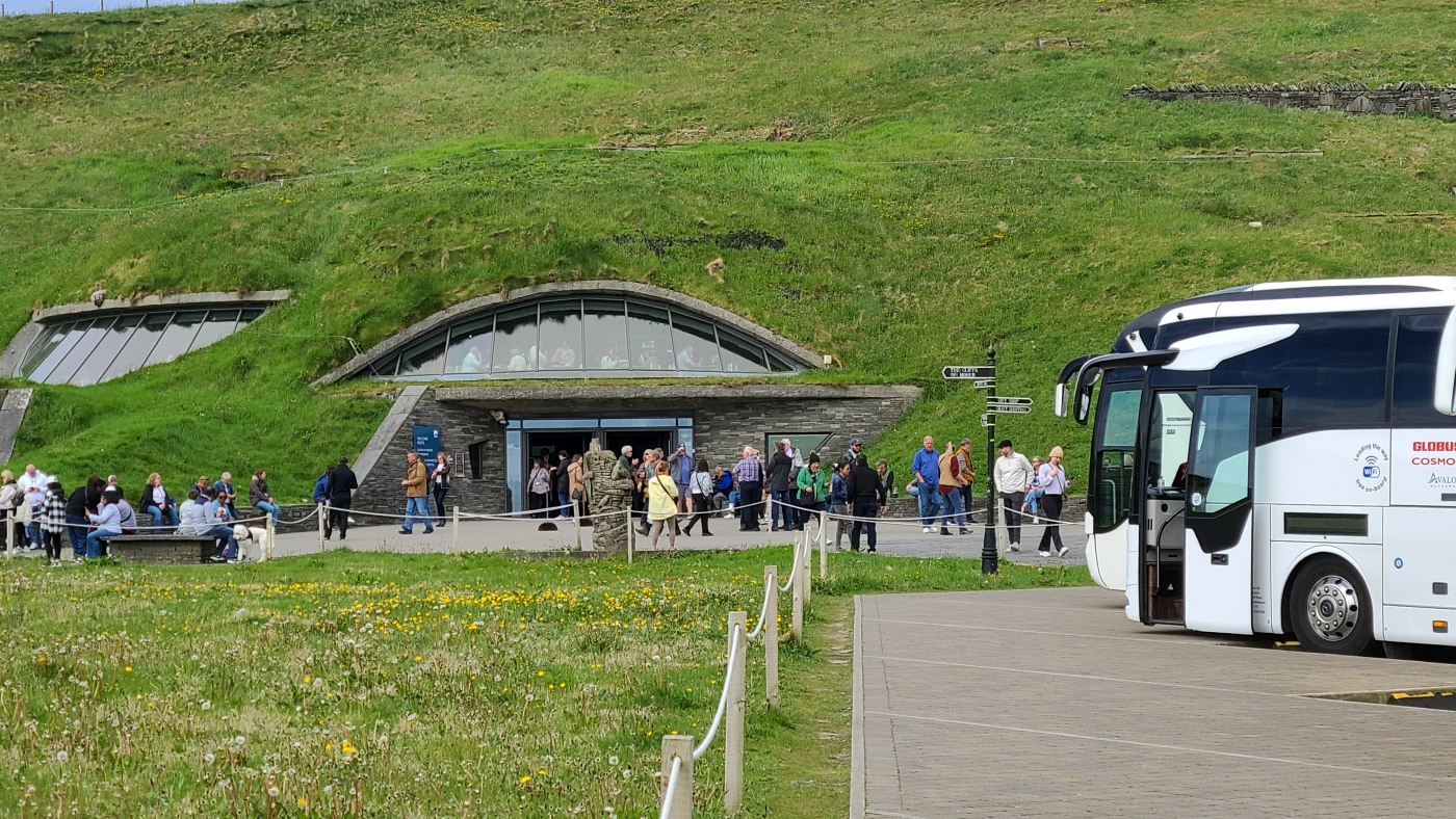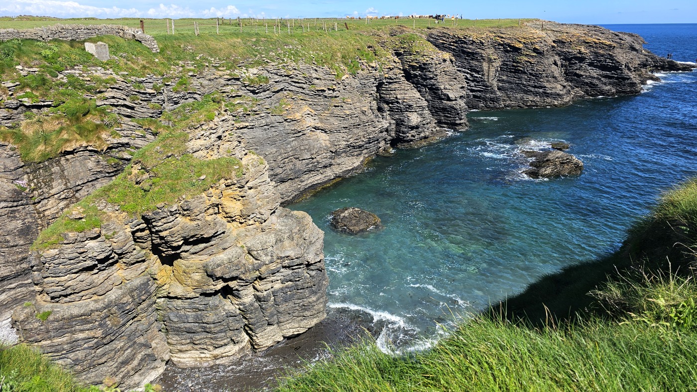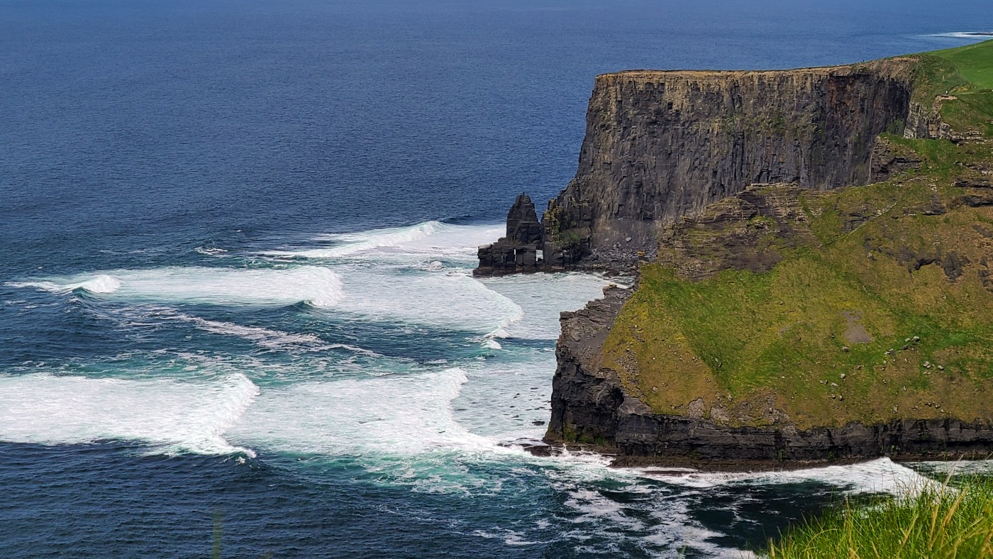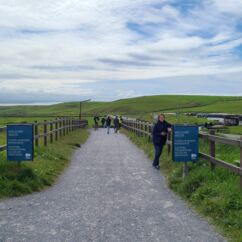 Wir dachten allerdings an unseren gestrigen Ausflug zu den Klippen der Insel Valentia zurück. Sie waren nur mit zwei aufsteigenden Kilometern Fußmarsch zu erreichen und bei weitem nicht so lang, aber fast ebenso hoch und eigentlich atemberaubender durch die Naturbelassenheit. Deren Besucher waren so wenig, dass man sich freundlich grüßte oder sogar ein paar Worte wechselte und der Parkplatz kostete zwei statt nun zwanzig Euro. Letzteres verbilligt für Senioren, wobei ich geschummelt habe und mich als 65-Jährige ausgegeben habe. Erschreckend übrigens, dass man mir das ohne Nachfrage geglaubt hat...