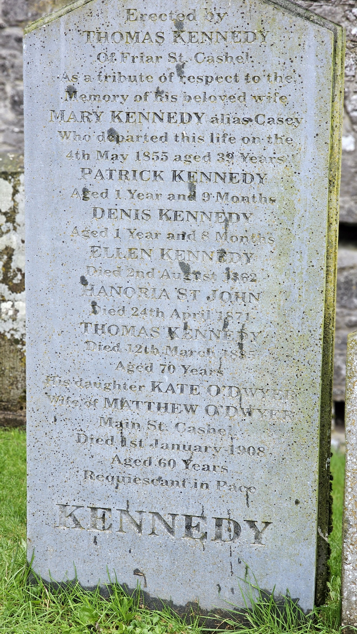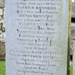 Auf dem Friedhof entdecken wir einen Grabstein der Familie Kennedy. Im EPIC-Museum in Dublin wurde John F. Kennedy als Nachkomme irischer Auswanderer aufgeführt. Vielleicht ist dies ein Grabstein seiner Vorfahren?