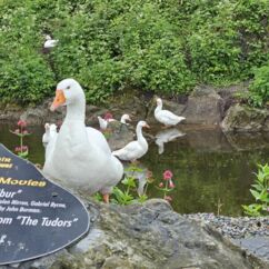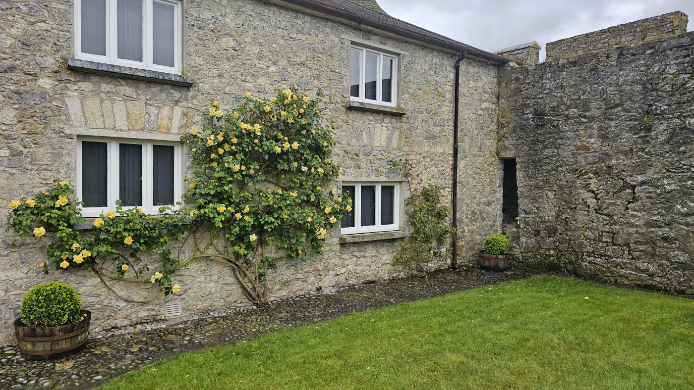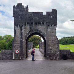 Cahir Castle ist nur 45 Minuten Fahrtzeit von Waterford entfernt. Bereits vom Parkplatz aus beeindrucken die hohen Mauern hinter dem Wassergraben. Die Wände sind hoch bewachsen und Gänse brüten dort im Efeudickicht. An einer kleinen Brücke zum Festungsgarten stehen zwei uralte riesige Bäume. Der eine ist mir völlig unbekannt. Kleine Blätter wie ein Rhododendron, ist aber keiner.
