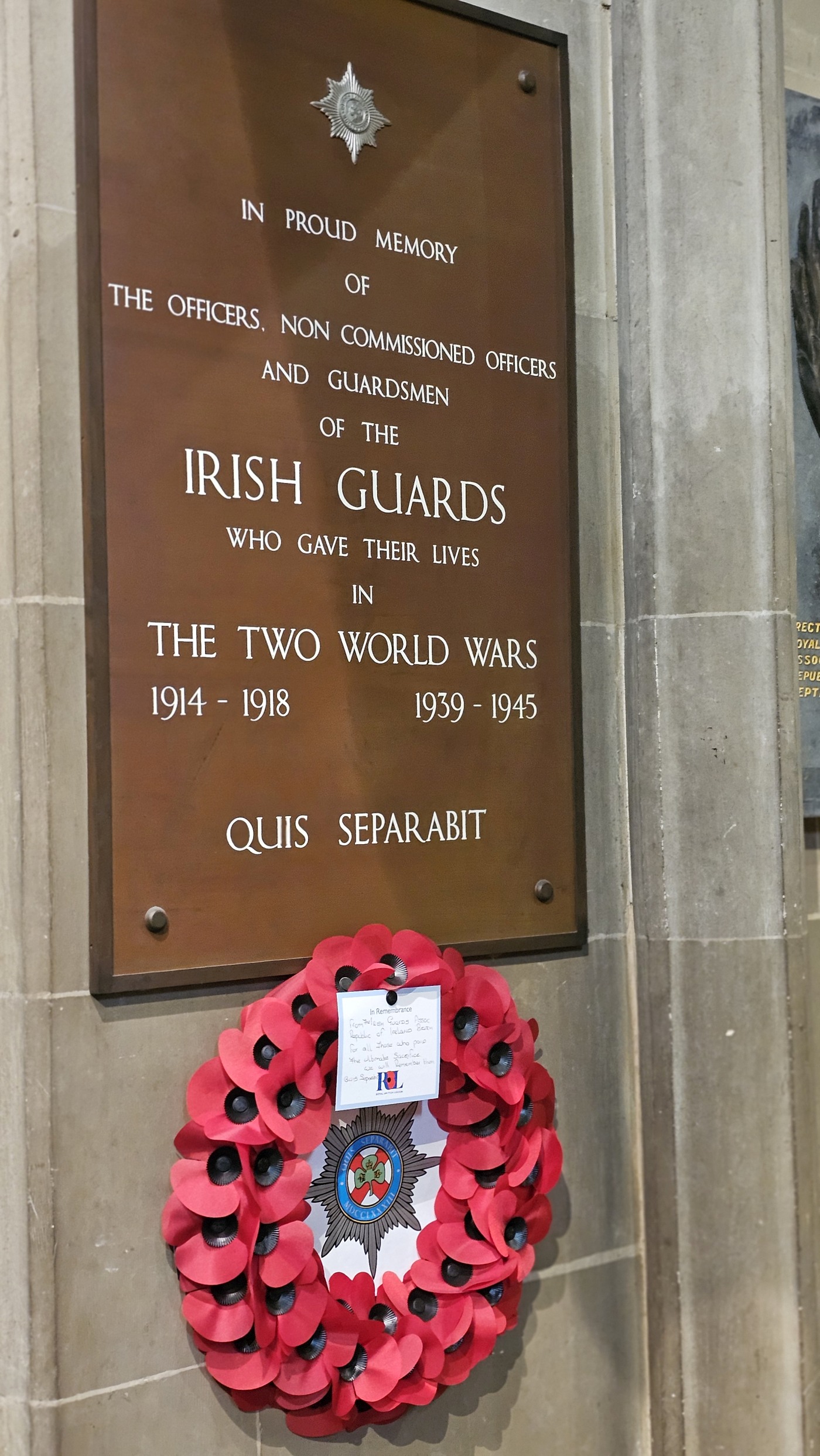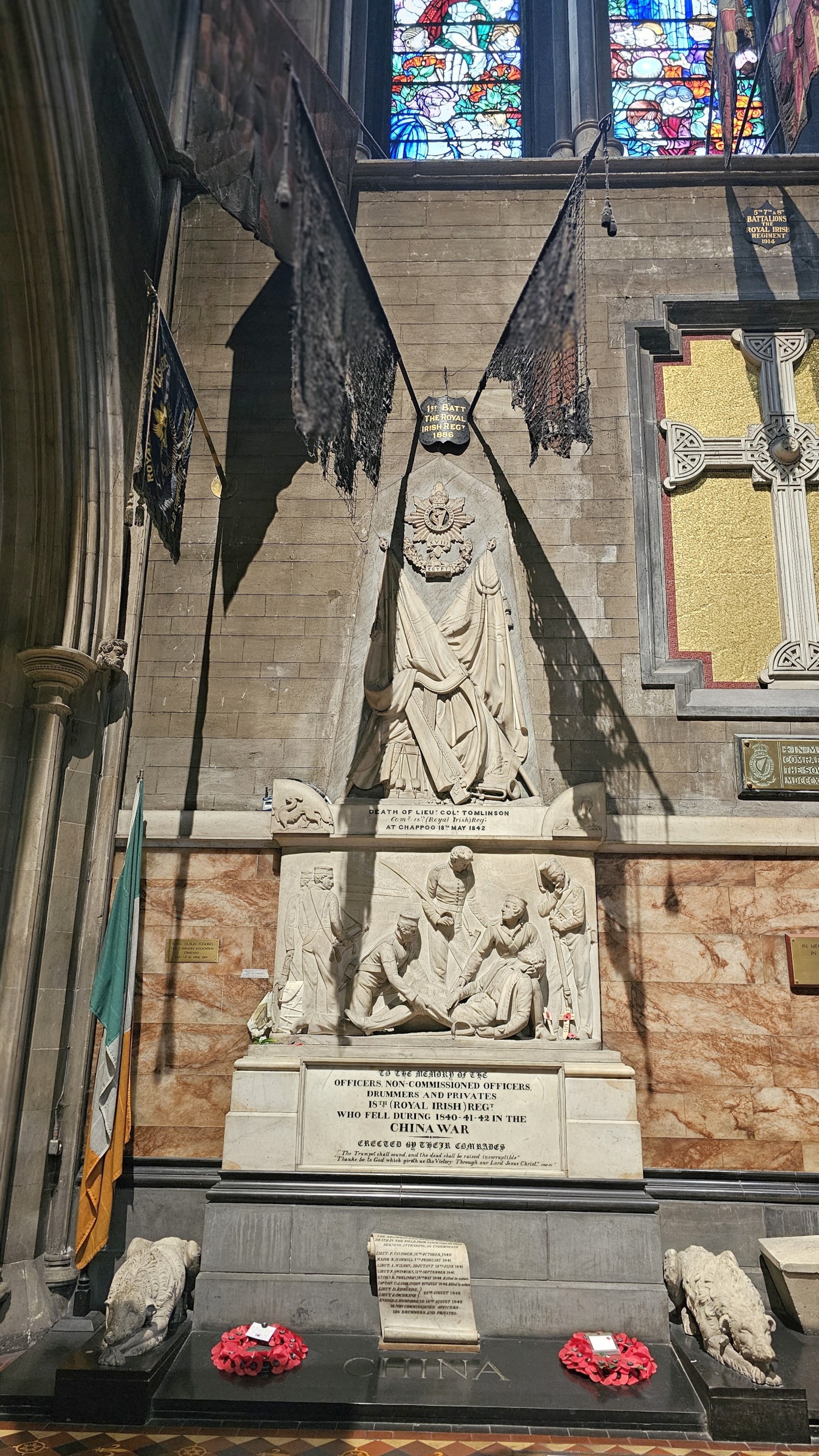 Zum Gedenken an die irischen Gefallenen aller Kriege begegnet man im Mittelschiff vielen Details. Die symbolträchtige Gestaltung hinterlässt ein Gefühl der Bedrückung. Beispielsweise sind über den Gedenktafeln zu den Gefallenen die Originalfahnen angebracht, mit denen in die Schlacht gezogen wurde. An ihnen darf unberührt der Zahn der Zeit nagen und so sind manchmal nur noch einzelne Fäden des Gewebes zu sehen.