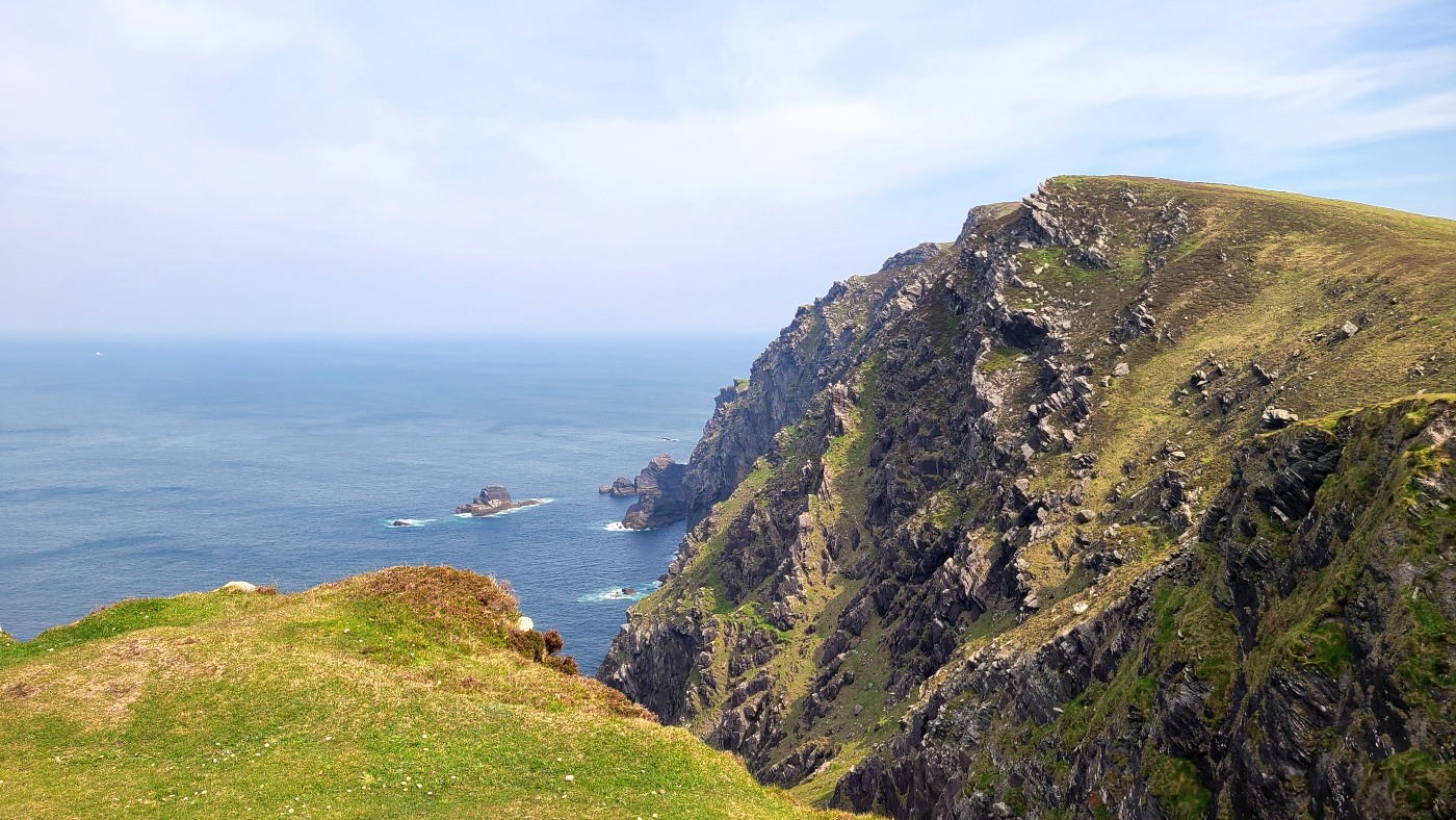 Heute ist unser letzte Tag in Beaufort und die letzte Chance, einem Tipp unserer Vermieterin Elli zu folgen. Wir fahren 70 Kilometer zur Insel Valentia und genießen von den Klippen und Bergen atemberaubende Blicke über Land und Meer. Klippen in dieser Schroffheit haben wir eigentlich erst für morgen erwartet, wenn wir auf dem Weg zur Ferienwohnung zu den Cliffs of Moher fahren.