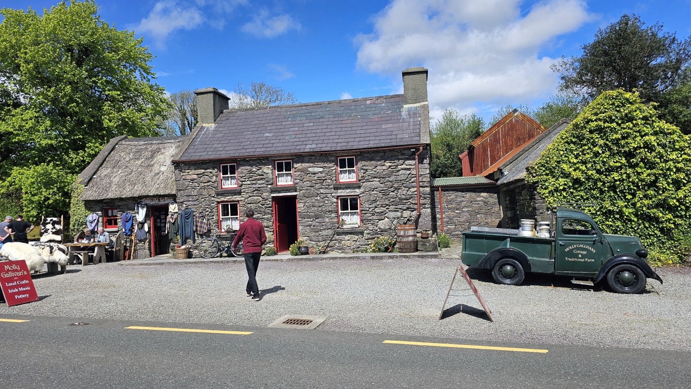 Trotz der sehr engen Fahrbahnen fahren wir heute wieder direkt an der Küste entlang - auf dem Wilde Atlantic Way. Wir stoppen wieder ab und an. Mal für einen kleinen Spaziergang durch den Wald, an einigen Aussichtspunkten für ein Fotos, bei Molly Gallivans Cottage für einen Kaffee und einen Plausch mit zwei Frankfurtern.