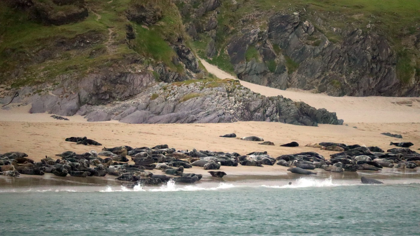 Vier Stunden dauert die Tour und wir treffen auf eine große Familie Define, sehen eine Seehundkolonie und entdecken ein paar vereinzelte Papageientaucher.
