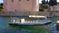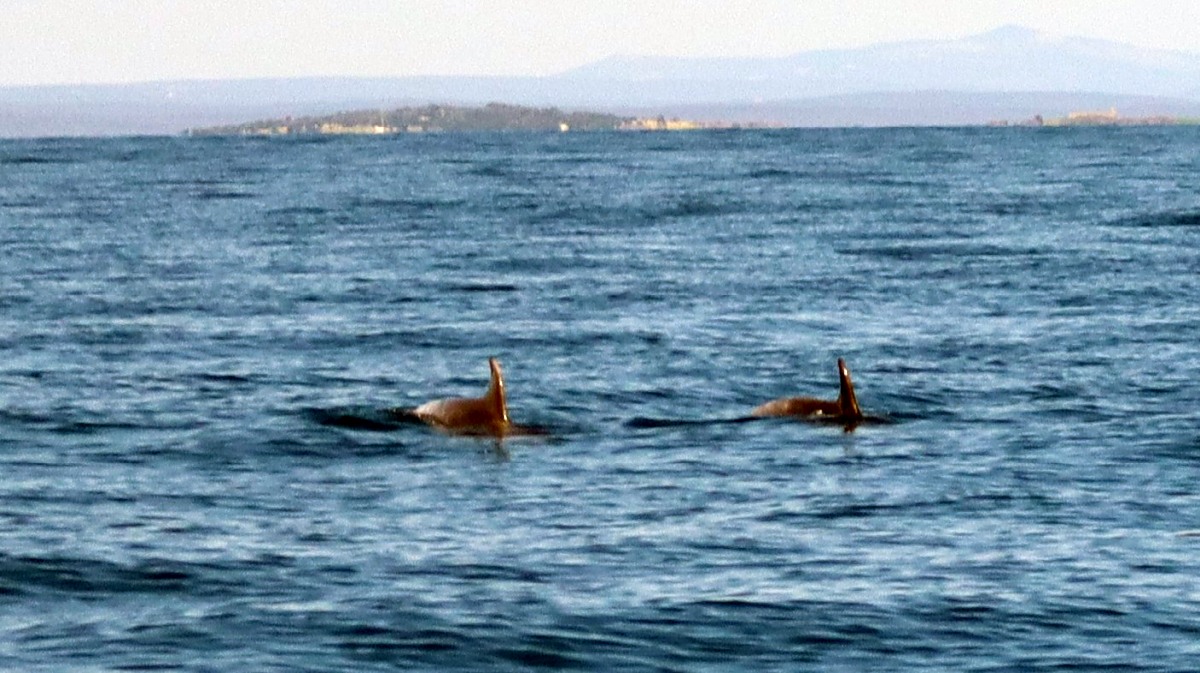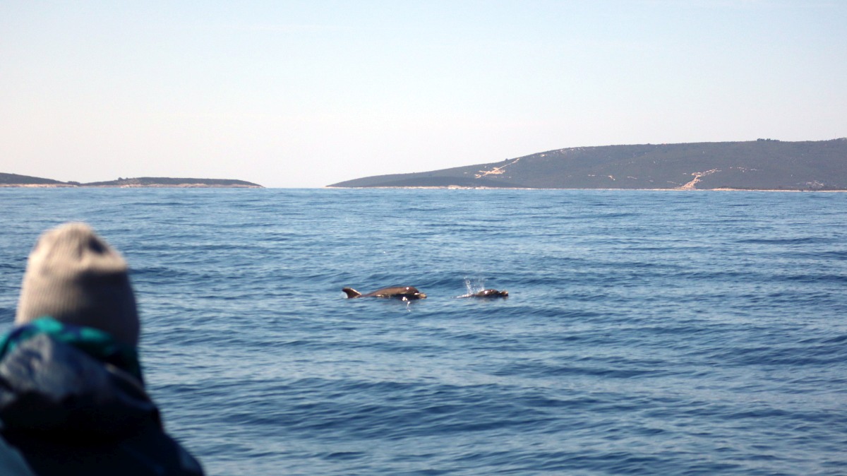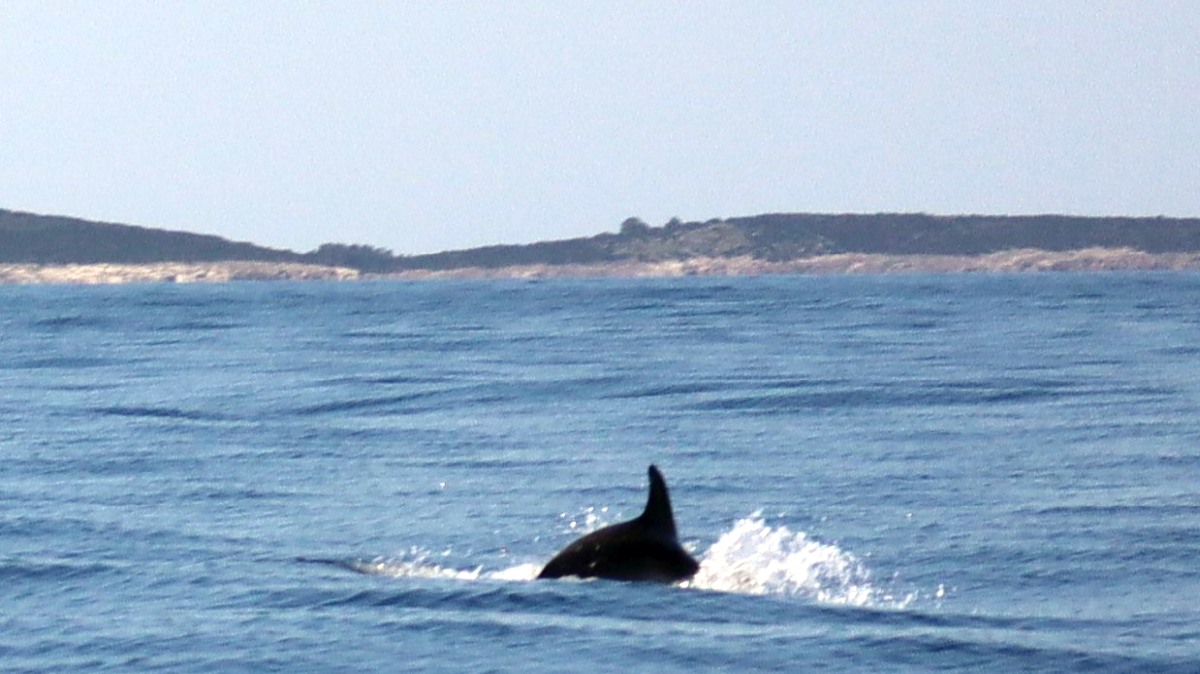 Nachmittags buchen wir in Velo Lošinj bei der Organisation Blue Watch - sie hat sich dem Schutz der Adria-Delfine und Schildkröten verschrieben - eine Delfin-Watching-Tour und informieren uns über die dortige Population. 200 Tiere werden seit den 1990er Jahren beobachtet und erforscht.