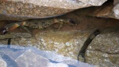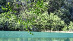 Leider ist eine Hälfte des Weges gesperrt, dafür beobachten wir eine Weile die Arbeiten einer Truppe, die angeseilt am Berg lose Steine und Holz in den See wirft. Offensichtlich hat die Sturmnacht vor einigen Tagen auch hier ihre Spuren hinterlassen.