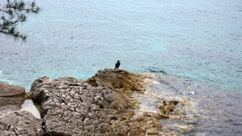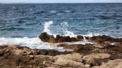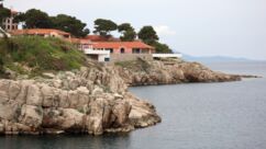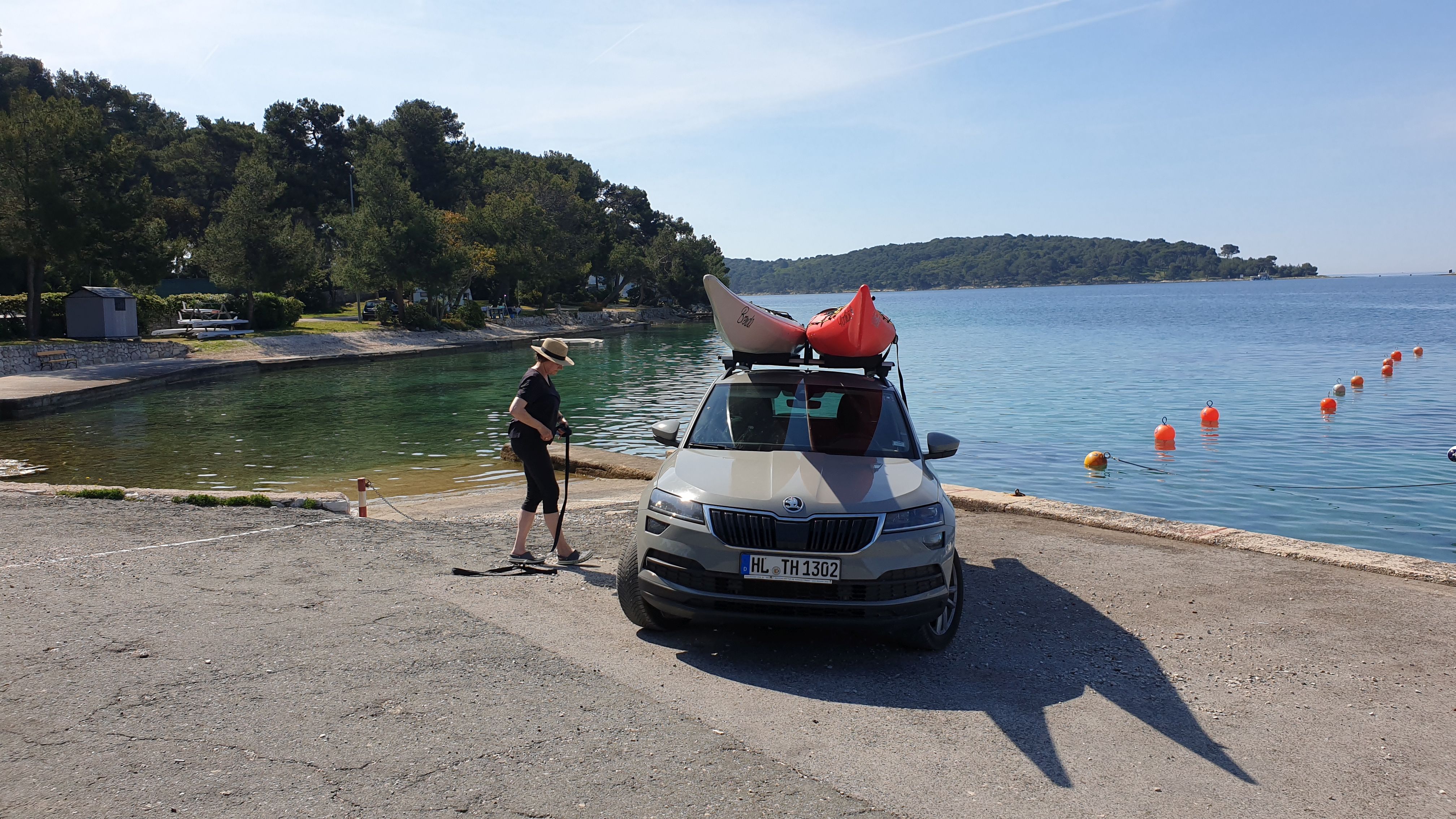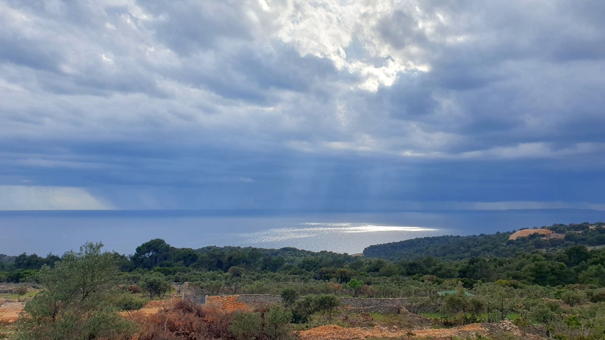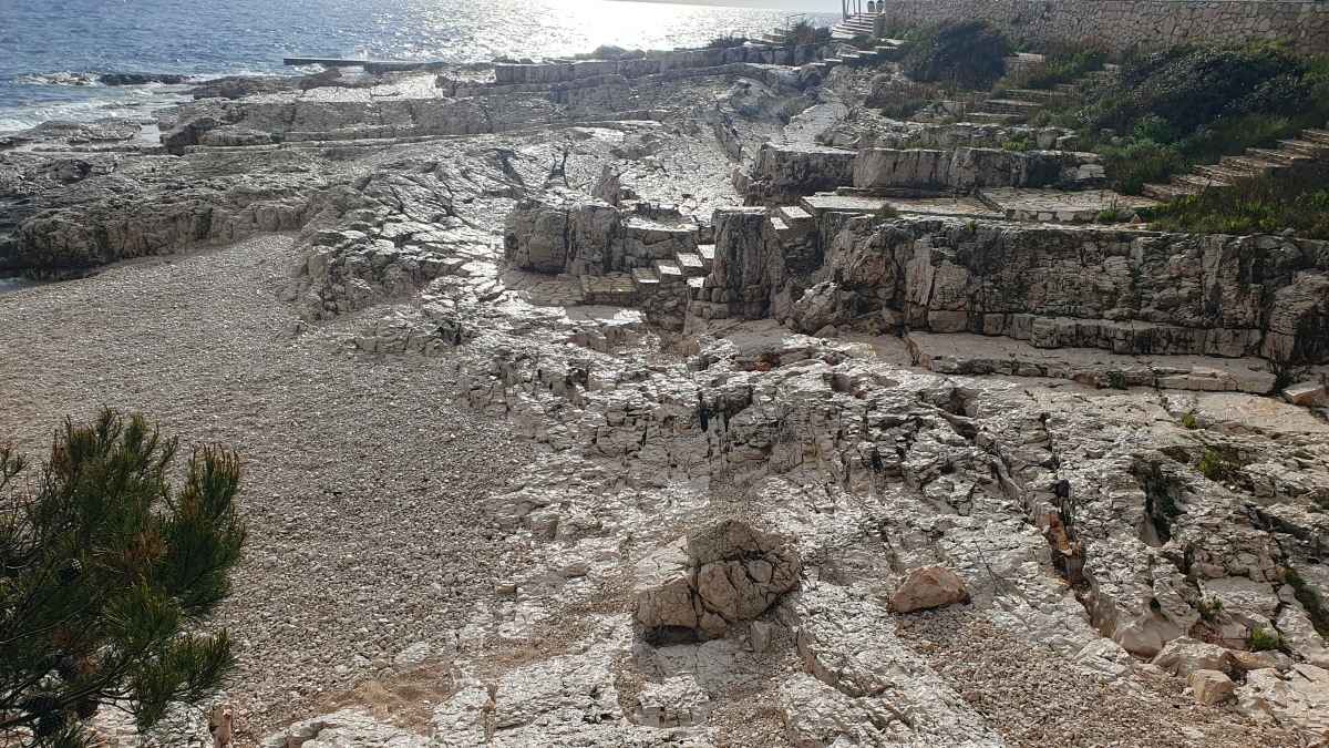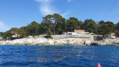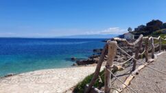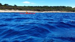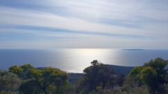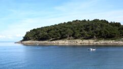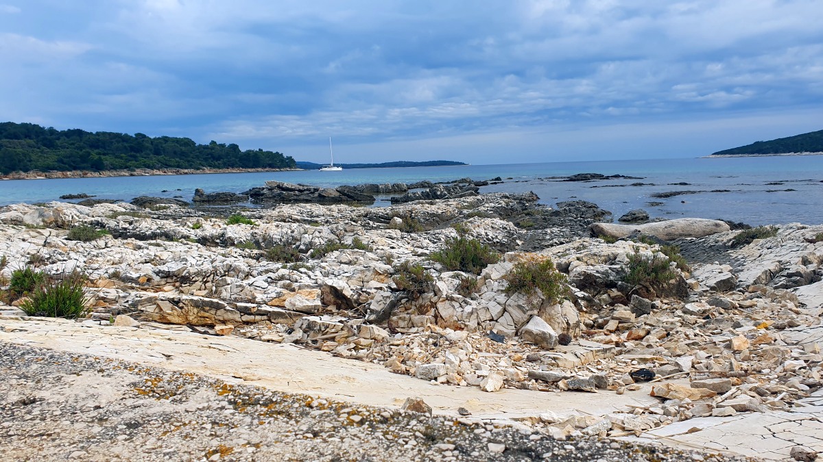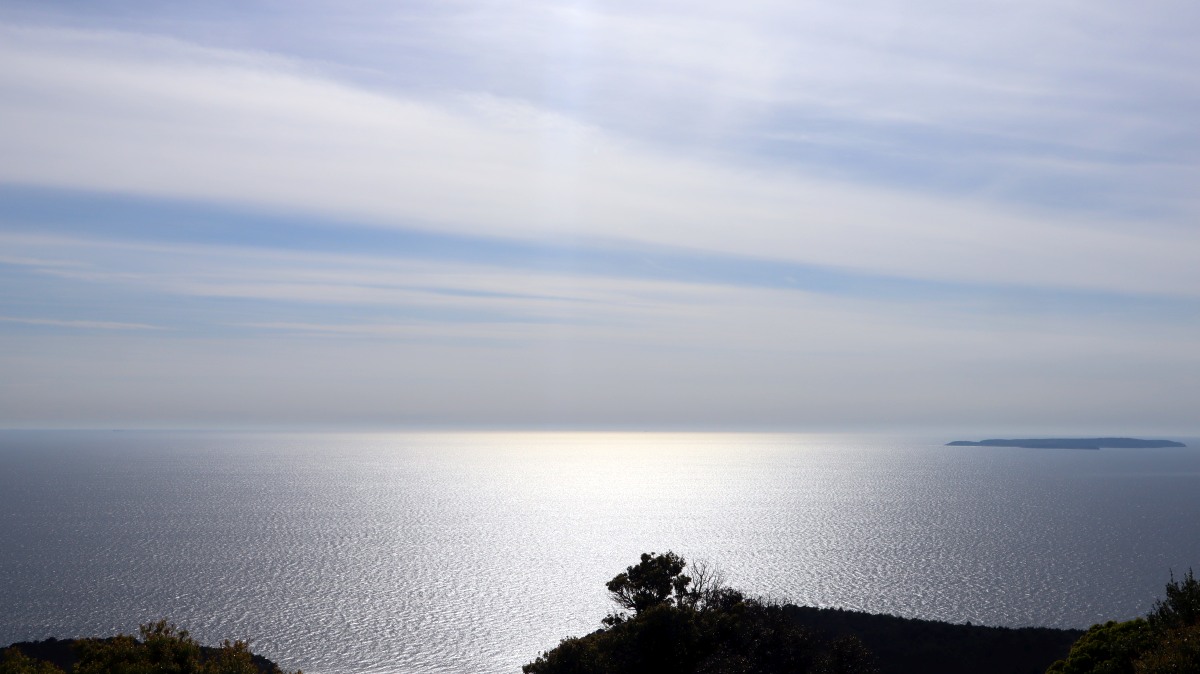 Direkt vor der Küste beginnt das Gebiet der Delfine, das sich bis zur Südspitze erstreckt. In der Hoffnung auf eine Einsatzmöglichkeit für unsere Kajaks gehen wir den Küstenweg ein Stück entlang, doch fündig werden wir nicht. Dieser Weg verläuft direkt an der Küste, vorbei an langgestreckten Pinienwäldern. Er ist so schön, dass wir ihn morgen von Mali Lošinj aus mit dem Rad befahren werden.