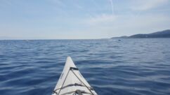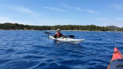 Morgens kaufen wir ein letztes Mal beim Fischmarkt ein, bereiten uns mittags wieder Spaghetti mit Pesto und Scampis zu und paddeln bei herrlichem Wetter an der westlichen Seite der Insel ca. 4,5 Kilometer südwärts. Das Meer ist sehr ruhig auf dieser Genießertour.