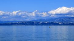 Das zweite Hafenbecken liegt in der nächsten Bucht und ist nur noch mit zwei Restaurants besetzt. Hier sind die Häuser am Hafenbecken oftmals renoviert, allerdings momentan noch nicht bewohnt, die Läden sind alle geschlossen. Wir genießen Miesmuscheln sowie Garnelen auf Spaghetti, bevor wir den Radweg bis zum Ende fahren. Das Wetter ist herrlich, die Wasseroberfläche spiegelblank und so manches Mal halten wir an, um in die Ferne zu schauen.
