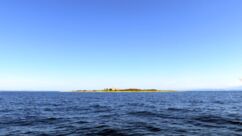 Der Blick an der Südspitze auf die umliegenden Inseln ist dann aber sehr beeindruckend. Dort liegt das Delfingebiet und wir wollten nach einem passenden Platz zum Einsetzen der Boote auskundschaften. Doch uns wird schnell klar, dass wir hier keinesfalls Paddeltouren starten können. Die steinigen Hänge sind zu steil und nirgendwo ist ist ein Strandstück in Sicht. Die Wassertaxis, die zu den anderen Inseln übersetzen, landen an einem großen Betonsteg an.