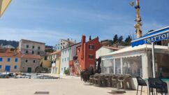 Der Küstenradweg führt uns schnell wieder ins sympathische Veli Lošinj. Am ersten Hafenbecken mit den rundum liegenden Cafés neben der Kirche gönnen wir uns einen Cappuccino. Die bunten Häuser haben meist offensichtlichen Renovierungsbedarf, doch Touristenaugen sehen das anders, die Herzen freuen sich über das mediterranen Flair :) Um uns herum herrscht trotz des Sonntags buntes Treiben und wieder lautes Stimmengewirr an den kroatisch besetzen Nebentischen. Wir lassen uns Zeit mit unserem Cappuccino.