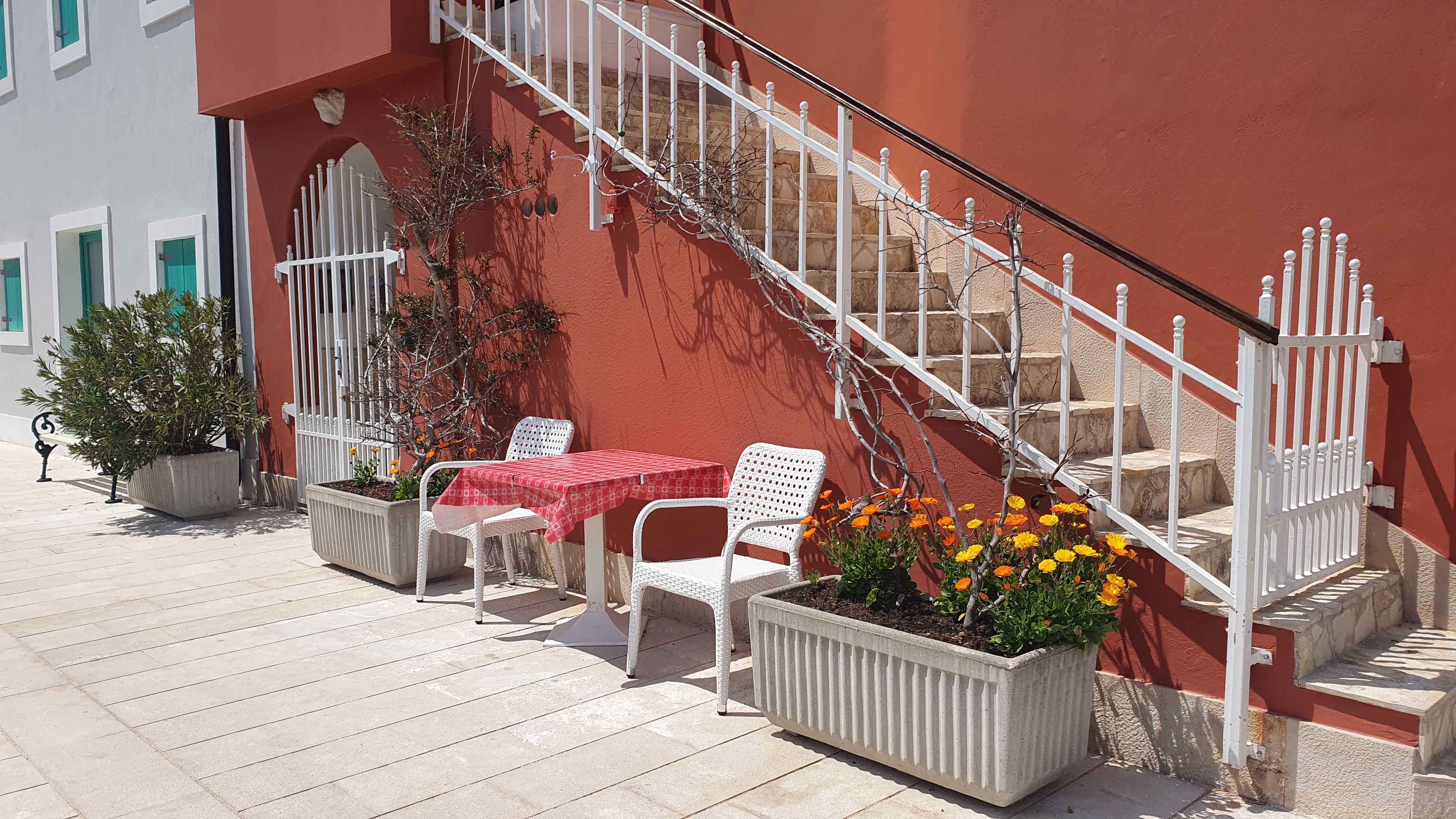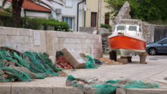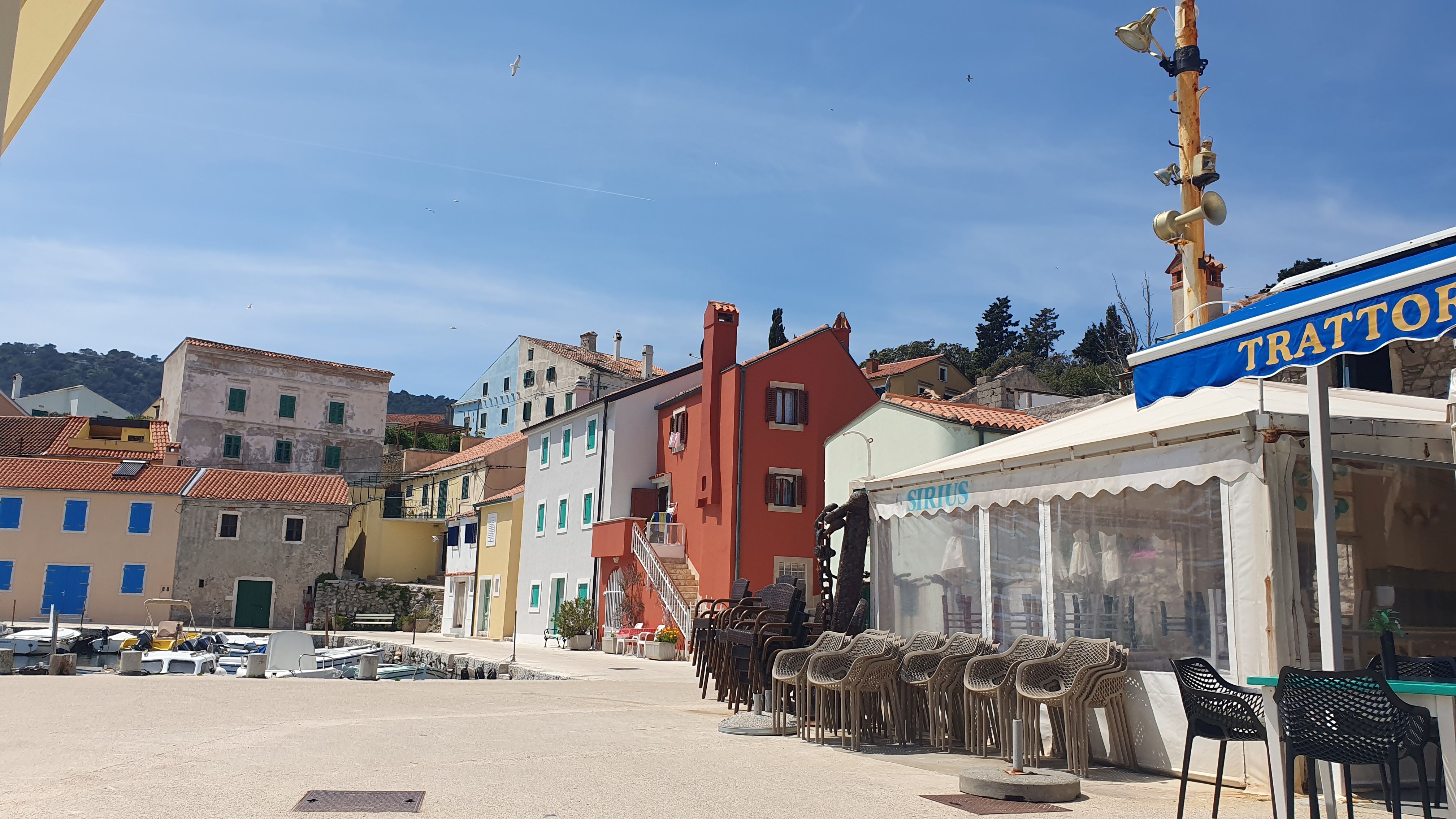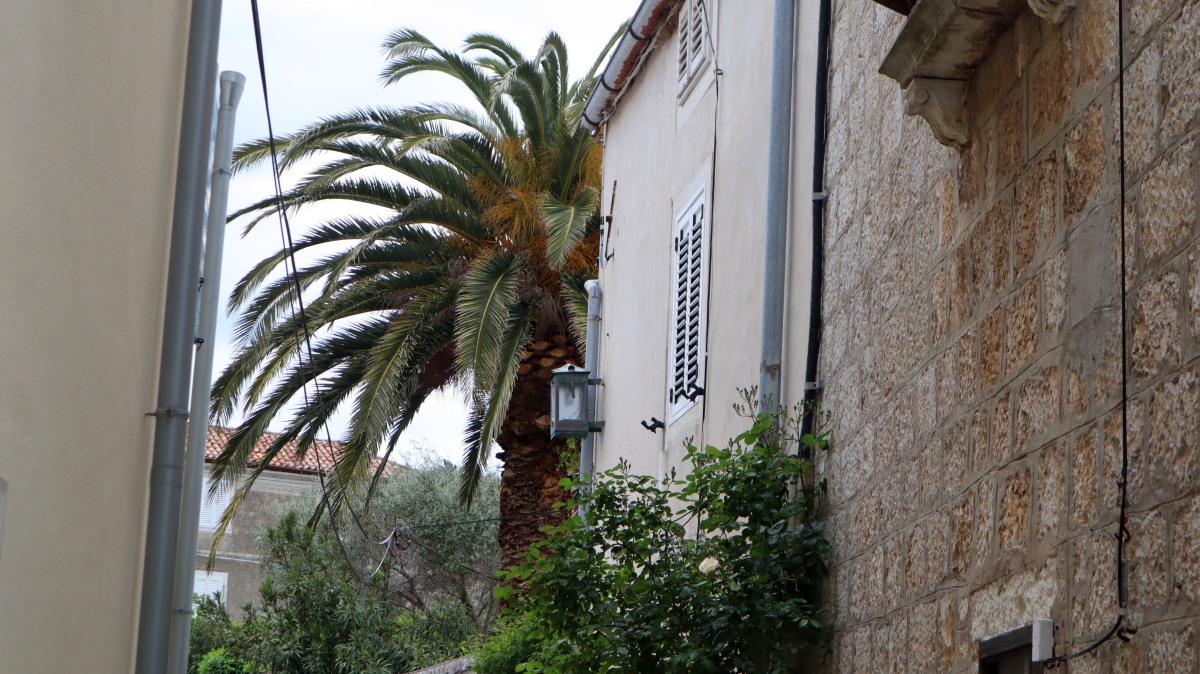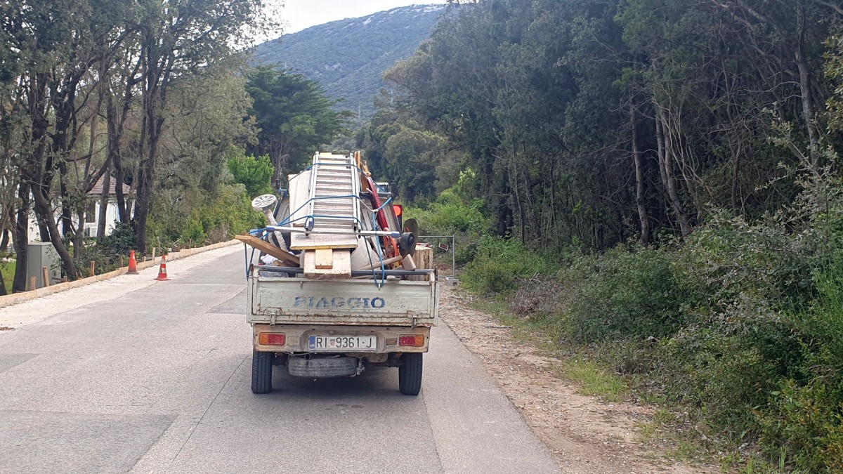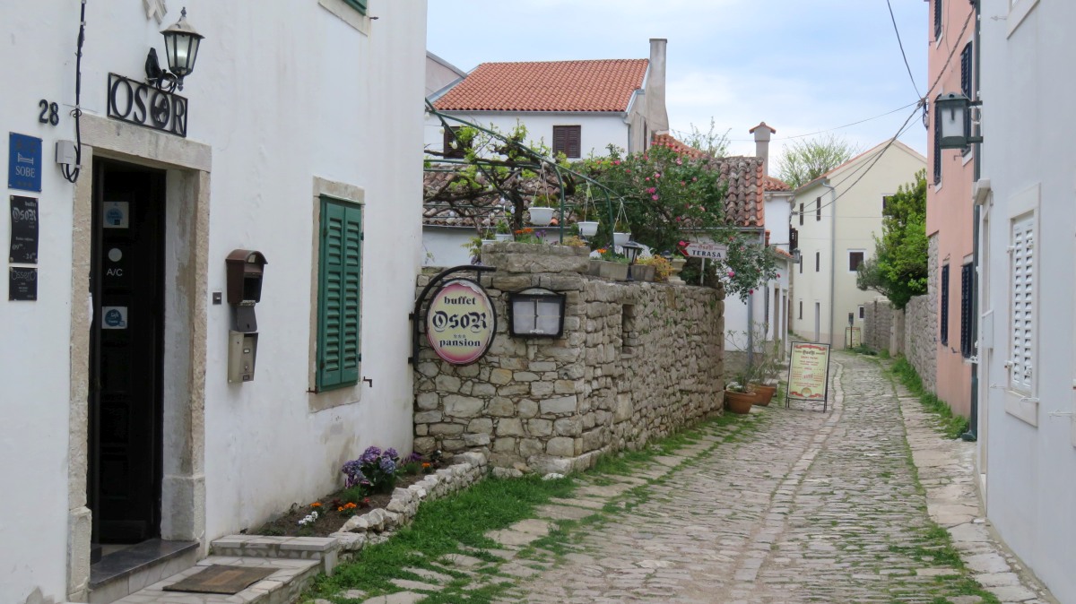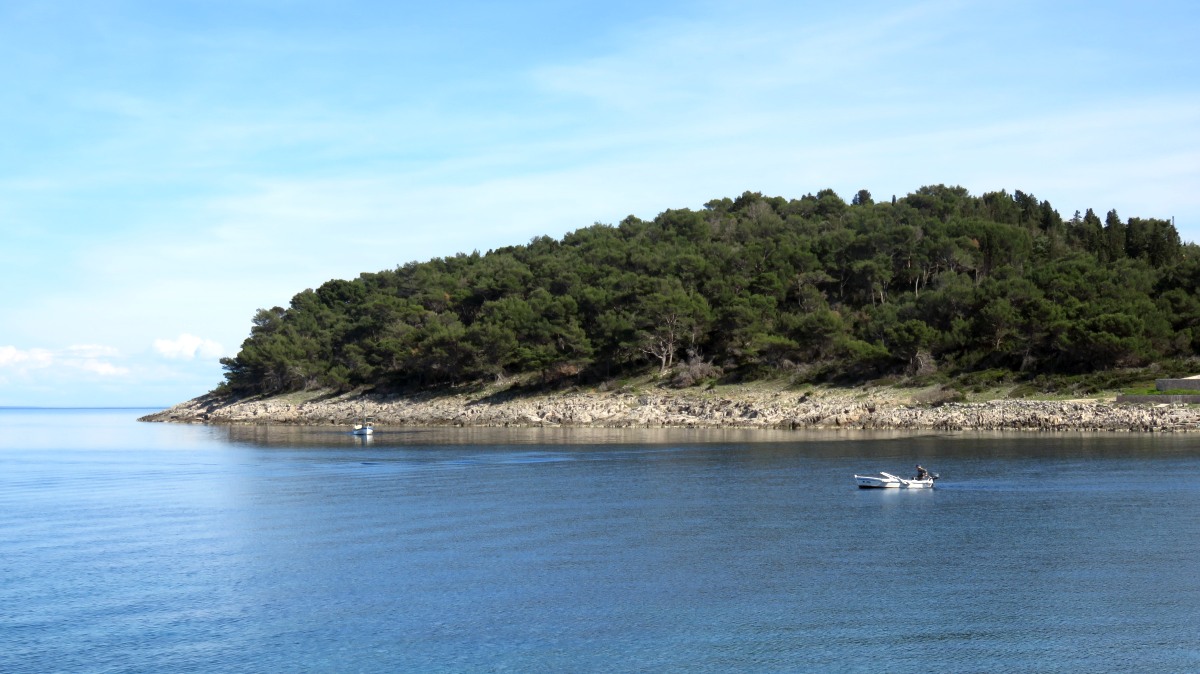 Die Urlaubssaison scheint dieses Wochenende eingeleitet zu werden. Der 1. Mai ist auch hier ein Feiertag und Ströme von beladenen Autos mit Dachboxen, Fahrrädern oder Booten wälzten sich gestern und heute über die Hauptstraße gen Süden der Insel. Auch in unserem Vorort Artatore wurden am Strand Boote zu Wasser gebracht. Nebenan hat eine slowenische Großfamilie ihr Ferienhaus bezogen und Opa hat ersteinmal den Garten auf Vordermann gebracht. Der Lärm und Gestank des Motorrasentrimmers direkt neben unserer kleinen Terrasse hat uns zum Mittagessen wieder ins Haus getrieben. Verständigen können wir uns leider nicht, sie sprechen kein Englisch und wir ja kein slowenisch. So wird es wohl beim kroatischen Dobre dan- guten Tag bleiben.