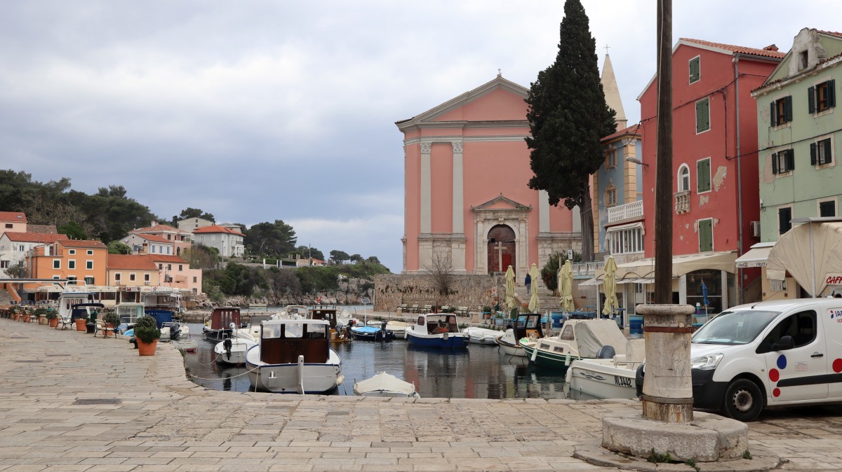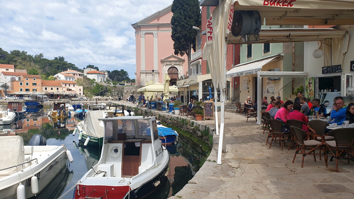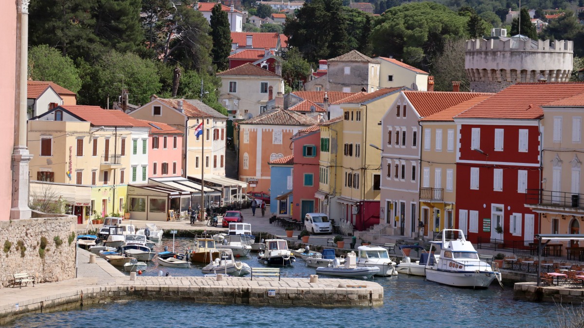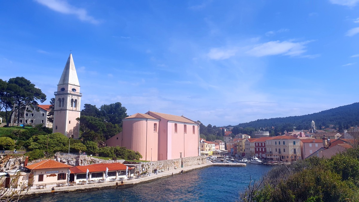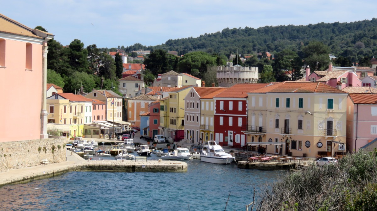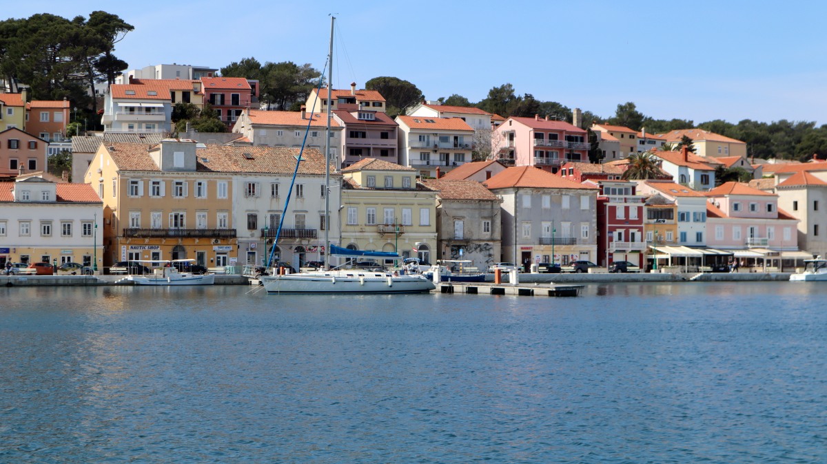 Veli bedeutet groß und Mali bedeutet klein. Und doch ist es bei den Orten genau umgedreht. Veli Lošinj ist viel kleiner als Mali Lošinj. Doch klein ist fein: Veli Lošinj hat vielfach mehr mediterranen Charme als das Nachbardorf. Ausschließlich enge Gassen - mit meist beeindruckenden Natursteinen - führen zu den beiden Hafenbuchten, wunderschöne Blüten duften von den Mauern herab und die Früchte von Zitronen- und Orangenbäumen leuchten aus den Baumkronen. Die Kirche thront auf einem Hügel, von dem man weit aufs Meer schauen kann und einen schönen Blick auf das Treiben am Hafenbecken hat. Aus den gut gefüllten Cafés tönen die lauten Stimmen der kroatischen Männer. Es scheint, dass die Touristen zahlenmäßig noch nicht die Oberhand gewonnen haben.