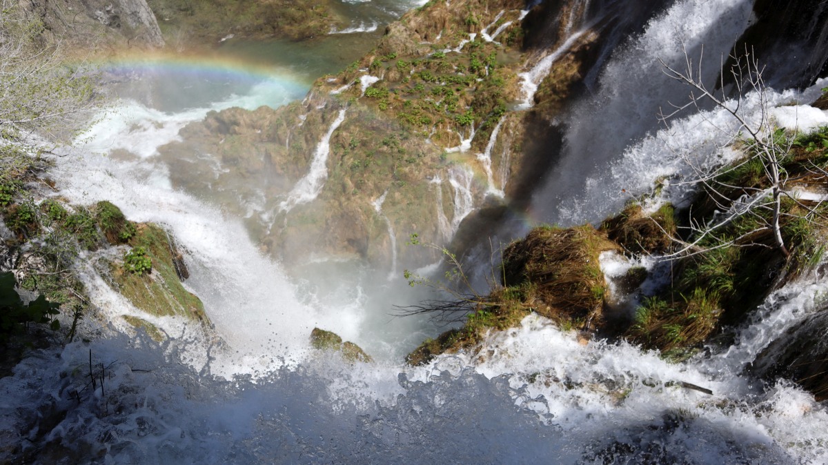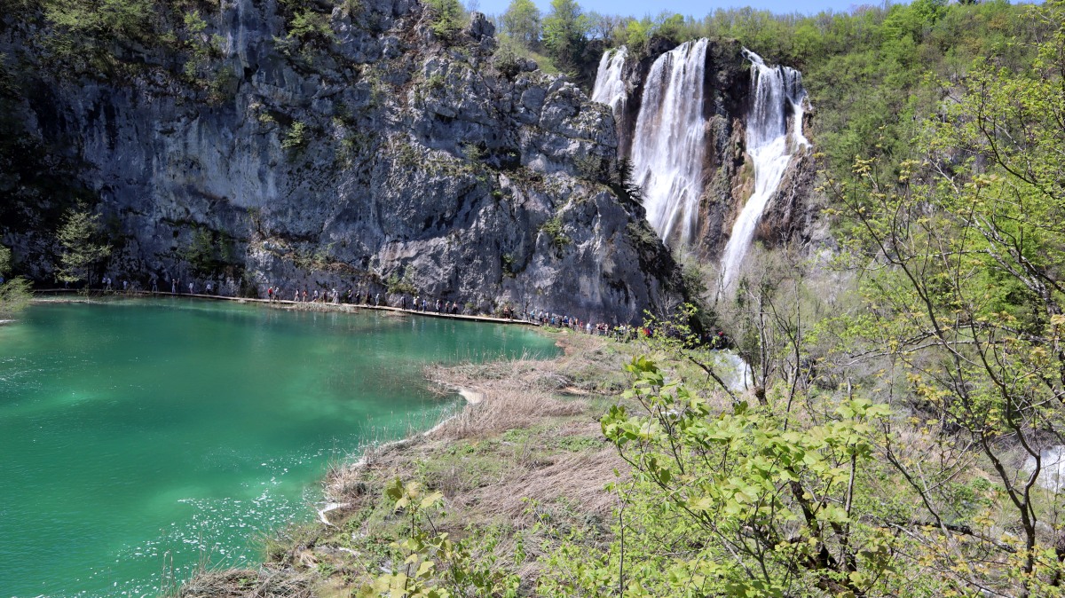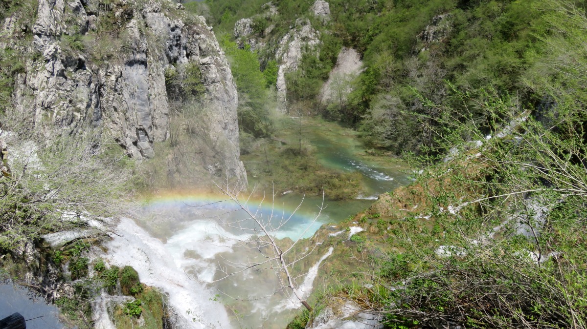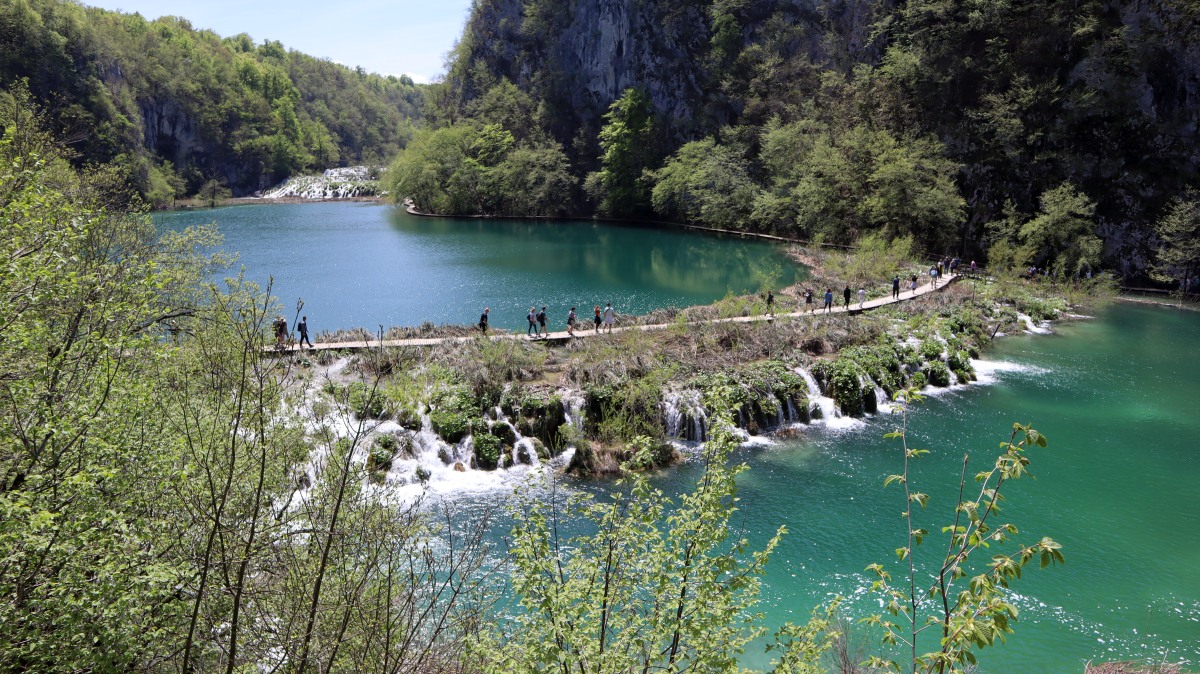 Igor hatte die gestrig geplante Delfinwatchingtour mit "important work" abgesagt. So haben wir uns auf den 250km-langen Weg zu den Plitvica Seen gemacht. Nach 60 Kilometern setzen wir mit der Fähre zur Insel Krk über, anschließend geht es über die Küstenstraße und durch die Berge weiter. Das Ticket für den Nationalpark wird für ein bestimmtes Zeitfenster online gebucht. Einen Parkplatz vor dem Gelände zu finden, ist nicht so einfach. Unzählige Autos und Reisebusse sind vor uns angekommen. Um 12.30 Uhr starten wir unseren Spaziergang zu den Winnetou-Drehorten mit den hohen Wasserfällen und den terrassenförmig angeordneten Seen. Sehr beeindruckend!