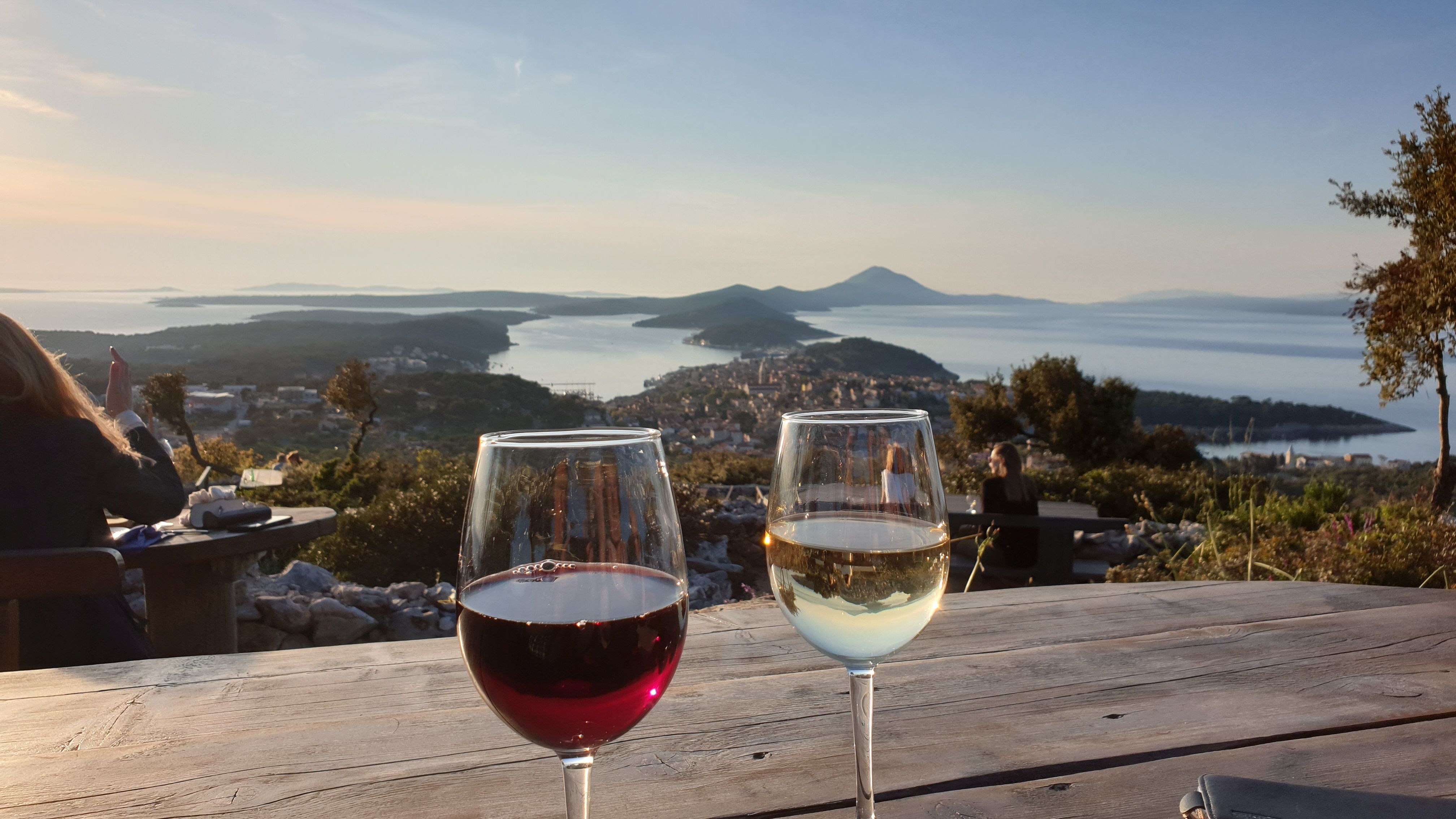 Abends geht es mit dem Genießen weiter: Wir fahren auf den Berg zum Providenca, gönnen uns ein Glas Wein, haben einen herrlichen Weitblick und beobachten einen phantastischen Sonnenuntergang. Es ist sehr entspannend und wir werden morgen - unserem vorletzten Tag in Kroatien - zu einem Abschiedsessen nochmals vorbeischauen.