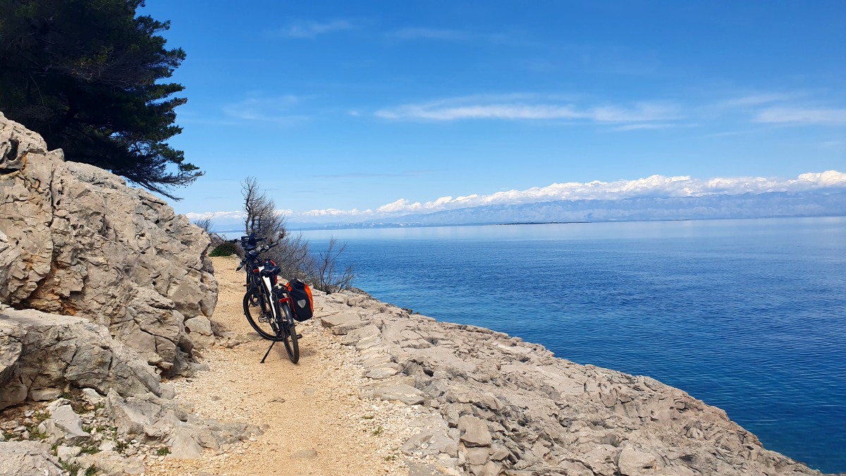 Vorgestern sind wir spät am Abend im Vorort von Mali Lošinj, in Arvatore angekommen. Unser netter AirBnb-Vermieter heißt Davor und beteuerte, dass es kein Problem sei, seinen Feierabend gegen 20.30 Uhr zu stören. Das Apartement ist recht klein und wir lassen alle Ausflugssachen im Auto. Die Pedelecs nebst Träger bringen wir hinter dem Haus unter unserer kleinen überdachten Terrasse unter und schlafen nach 10 Stunden Autofahrt schnell ein.