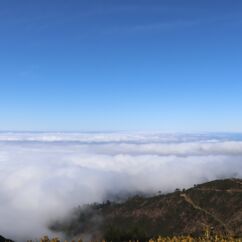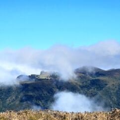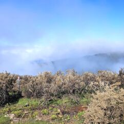 Der Rückweg führt über die Berge, die Wolken sind wieder unter uns und auf dem Weg nach unten fahren wir durch sie hindurch.