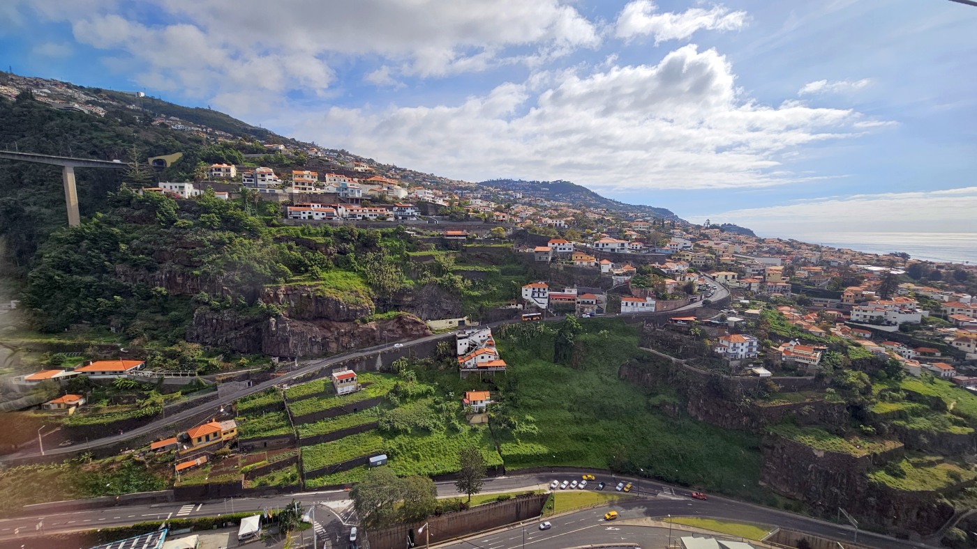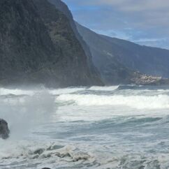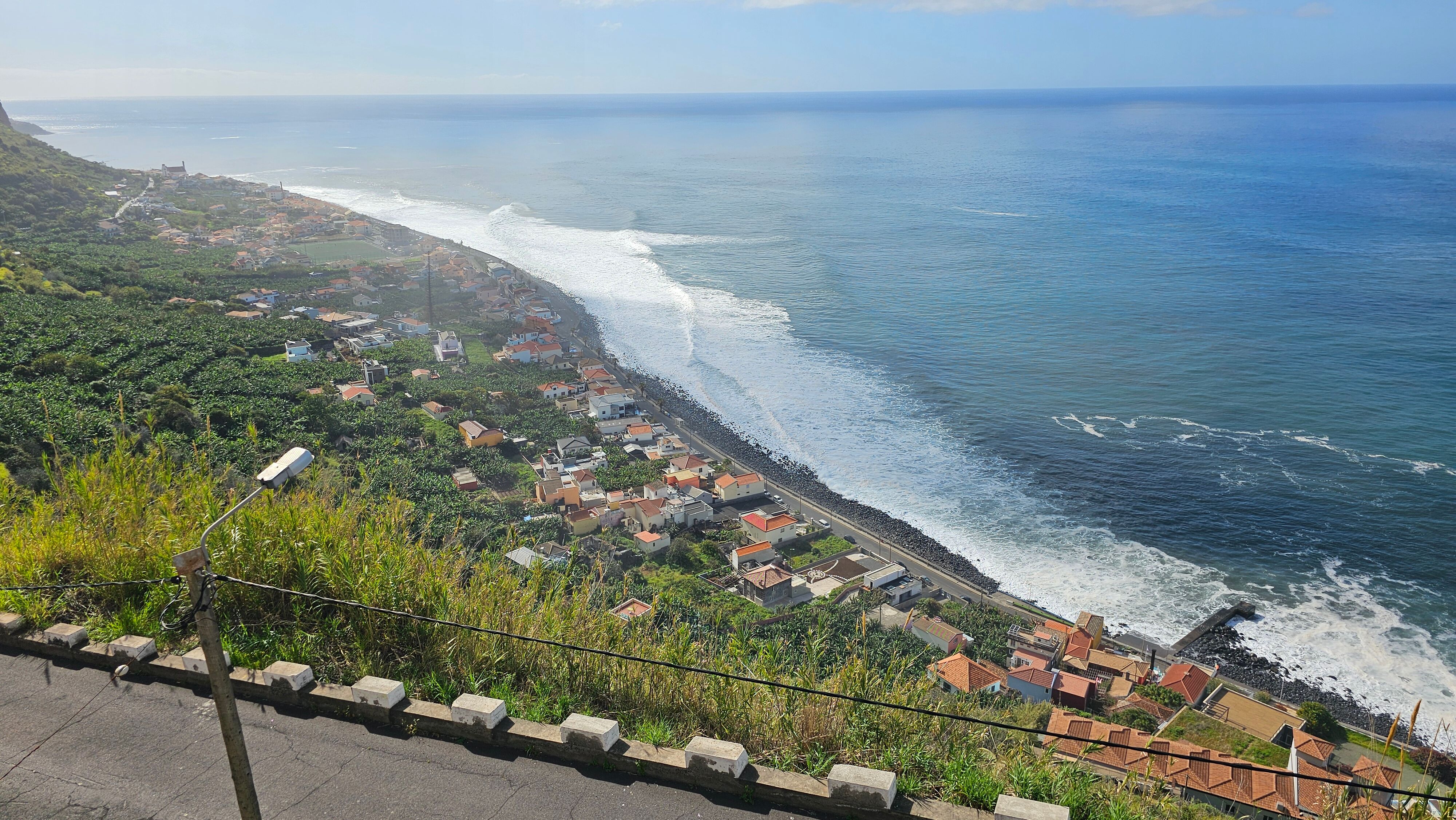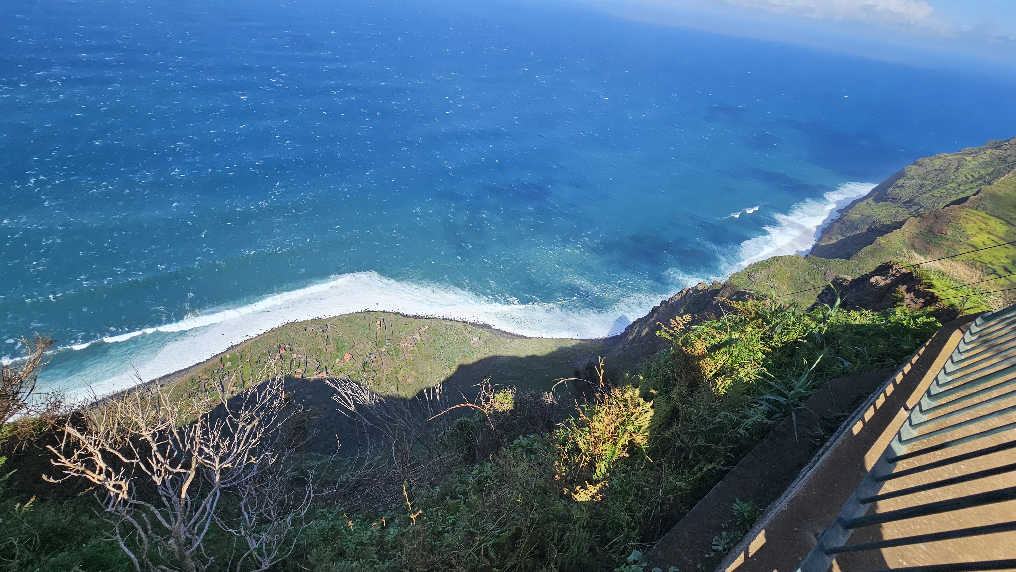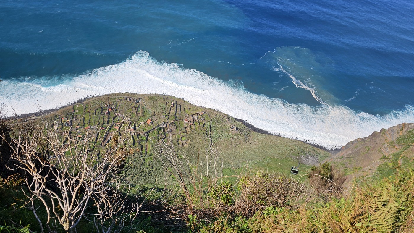 Über Ribeira Brava fahren wir über Schnellstraße und Tunnel nach Sao Vincente, der ersten Station unserer Rundtour durch den Norden. Die Brandung ist spektakulär und wir können bis nach Porto Moniz schauen. Über Ponta Delgado geht es weiter bis zur Seilbahn vor Santana. Sie ist vorübergehend geschlossen, doch der Blick in die Tiefe ist atemberaubend.
