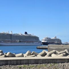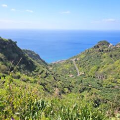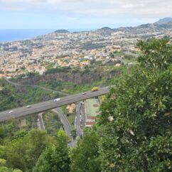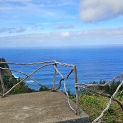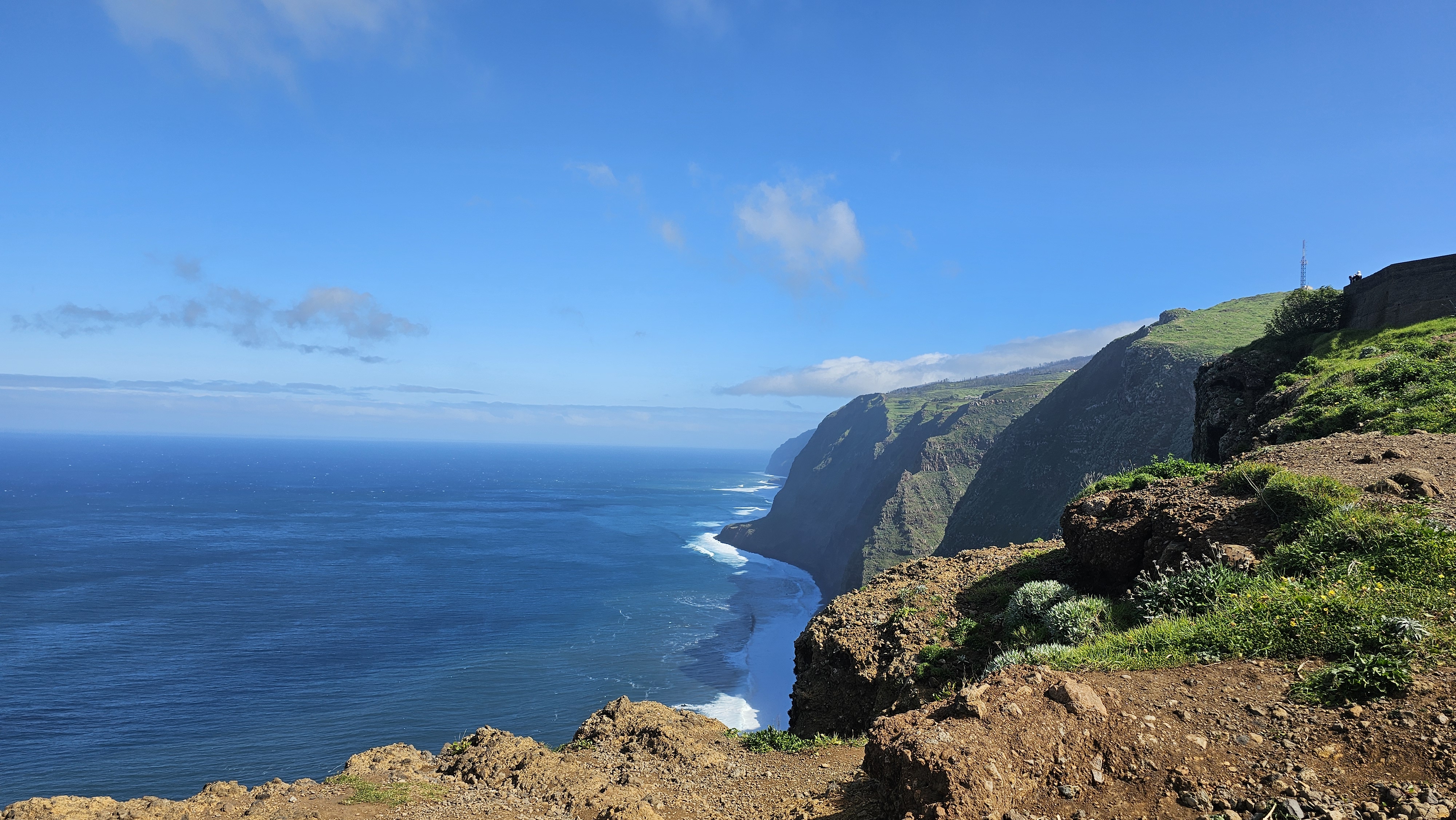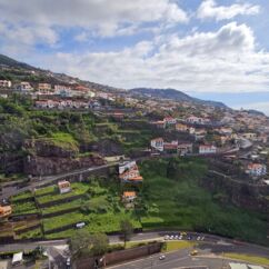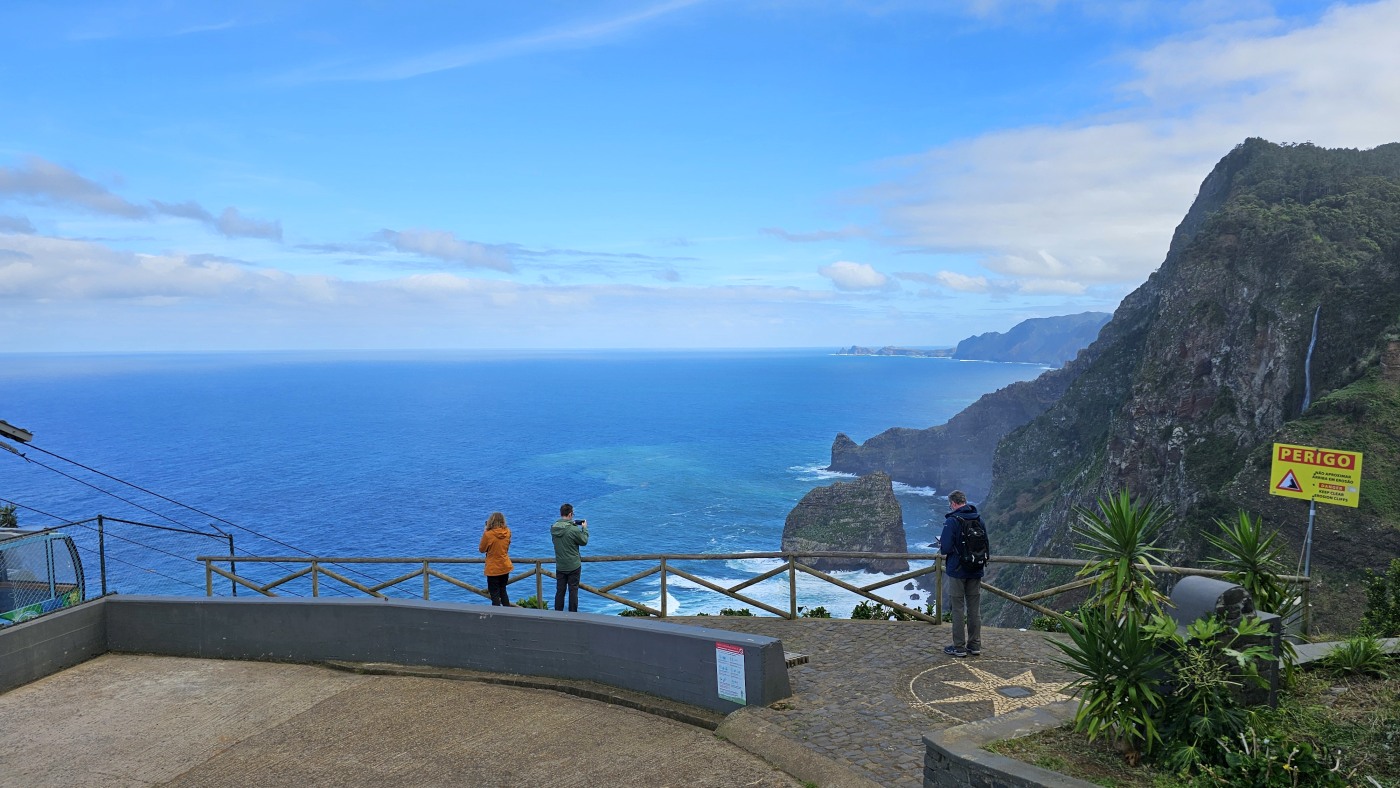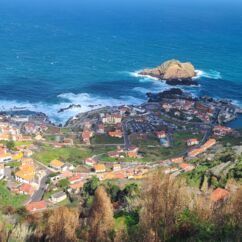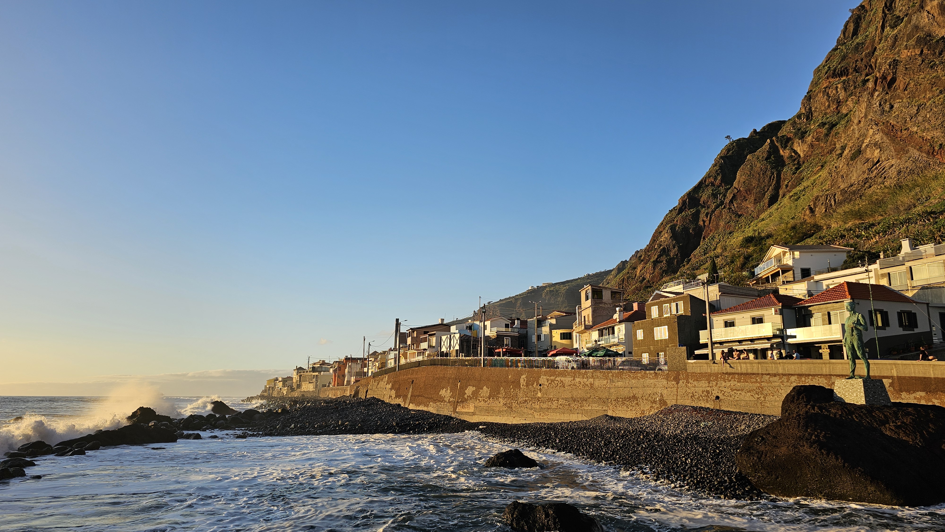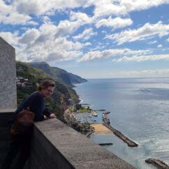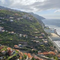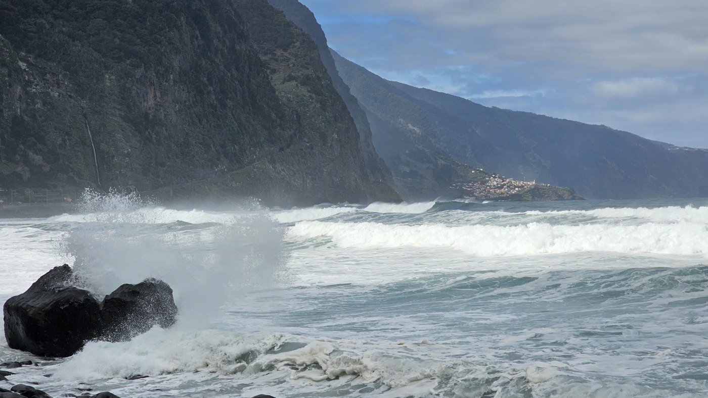 Über Ribeira Brava fahren wir über Schnellstraße und Tunnel nach Sao Vincente, der ersten Station unserer Rundtour durch den Norden. Die Brandung ist spektakulär und wir können bis nach Porto Moniz schauen. Über Ponta Delgado geht es weiter bis zur Seilbahn vor Santana. Sie ist vorübergehend geschlossen, doch der Blick in die Tiefe ist atemberaubend.