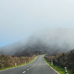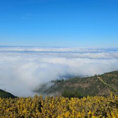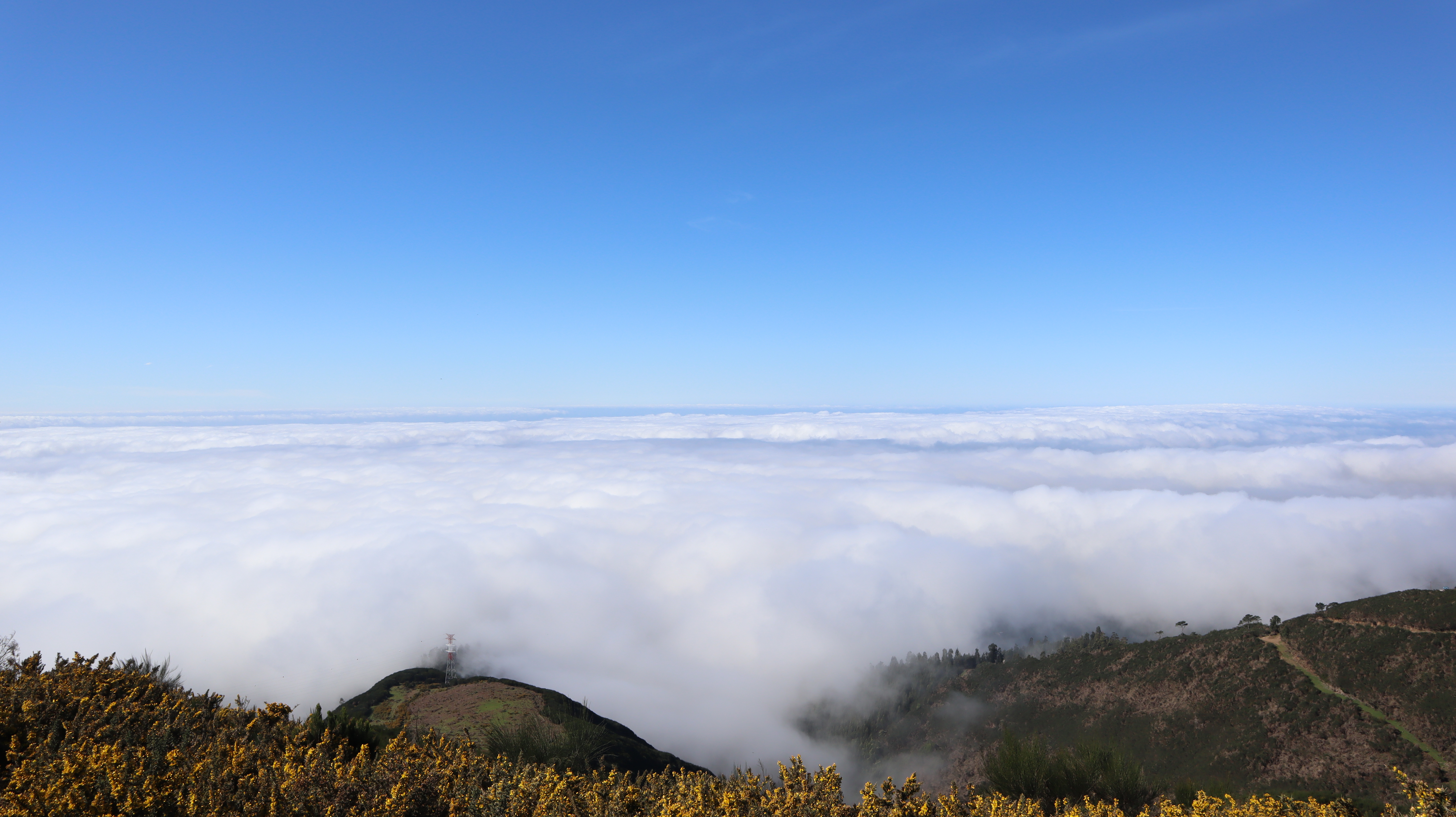 Nach der anstrengenden Wanderung lassen wir uns von einem kleinen Shuttle-Tansporter zum Parkplatz mitnehmen. Der Rückweg nach Paul do Mar über die Berge bietet weite Ausblicke, wir sind hier tatsächlich über den Wolken.