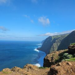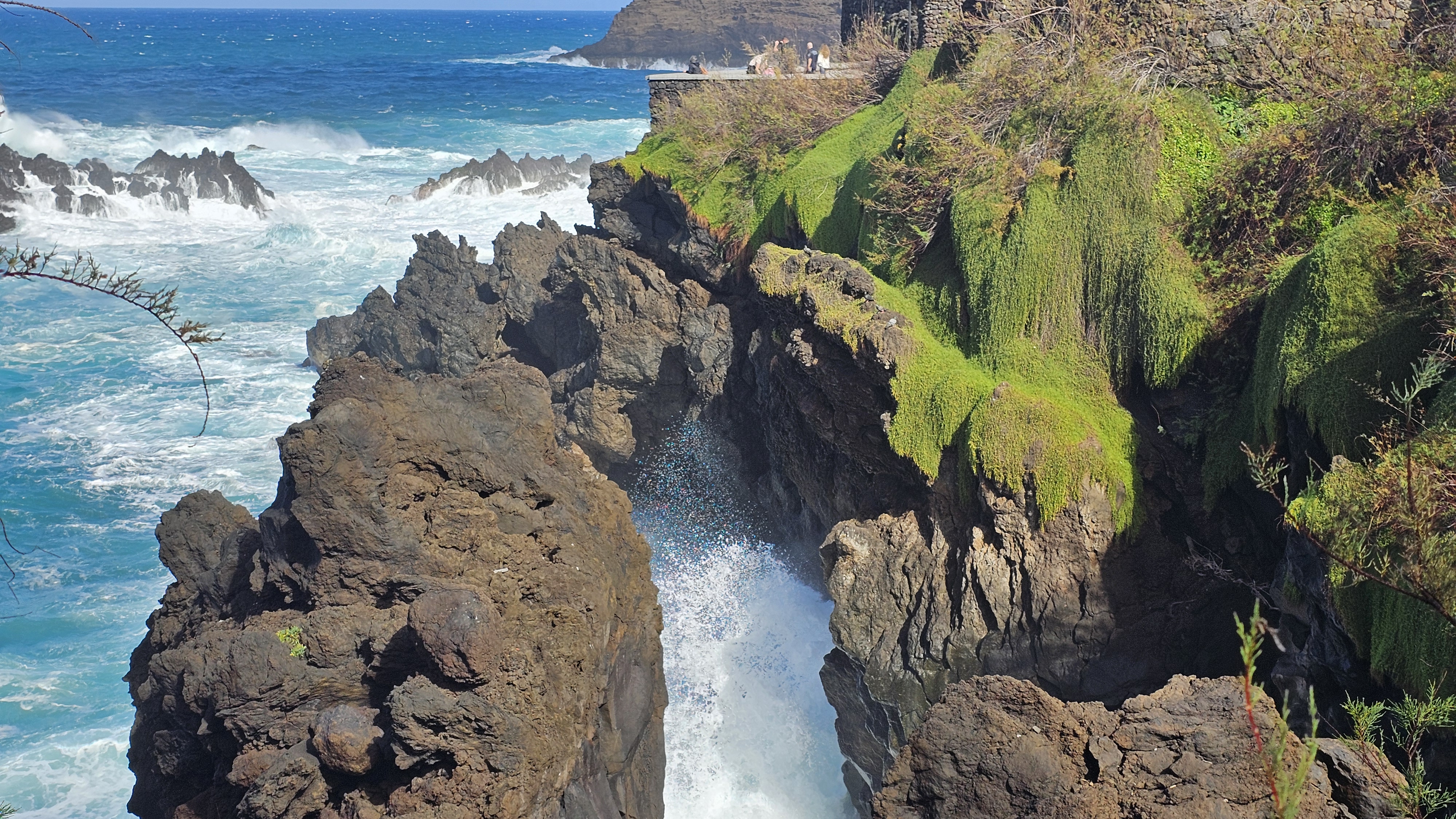Wir machen eine Rundtour durch den Norden der Insel. Zuerst an der Küste entlang, wieder steil nach oben. In Pargo steht ein schöner Leuchtturm und man kann 305 Meter über der Abgrundkante das Meer unterhalb der Steilküste toben sehen.