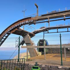 Weiter geht´s zur Caminho do Teleferico, der steilsten Seilbahn Europas. Die Straßenführung dorthin ist abenteuerlich, ich wünsche mir mehrfach Leitplanken, auch wenn Fritz sehr souverän die Strecke meistert. Die Seilbahn ist außer Betrieb - vermutlich wegen des Sturms. Ist in jedem Fall egal, nach einem Blick in die Tiefe wären wir beide nicht mitgefahren.