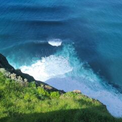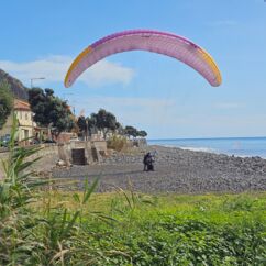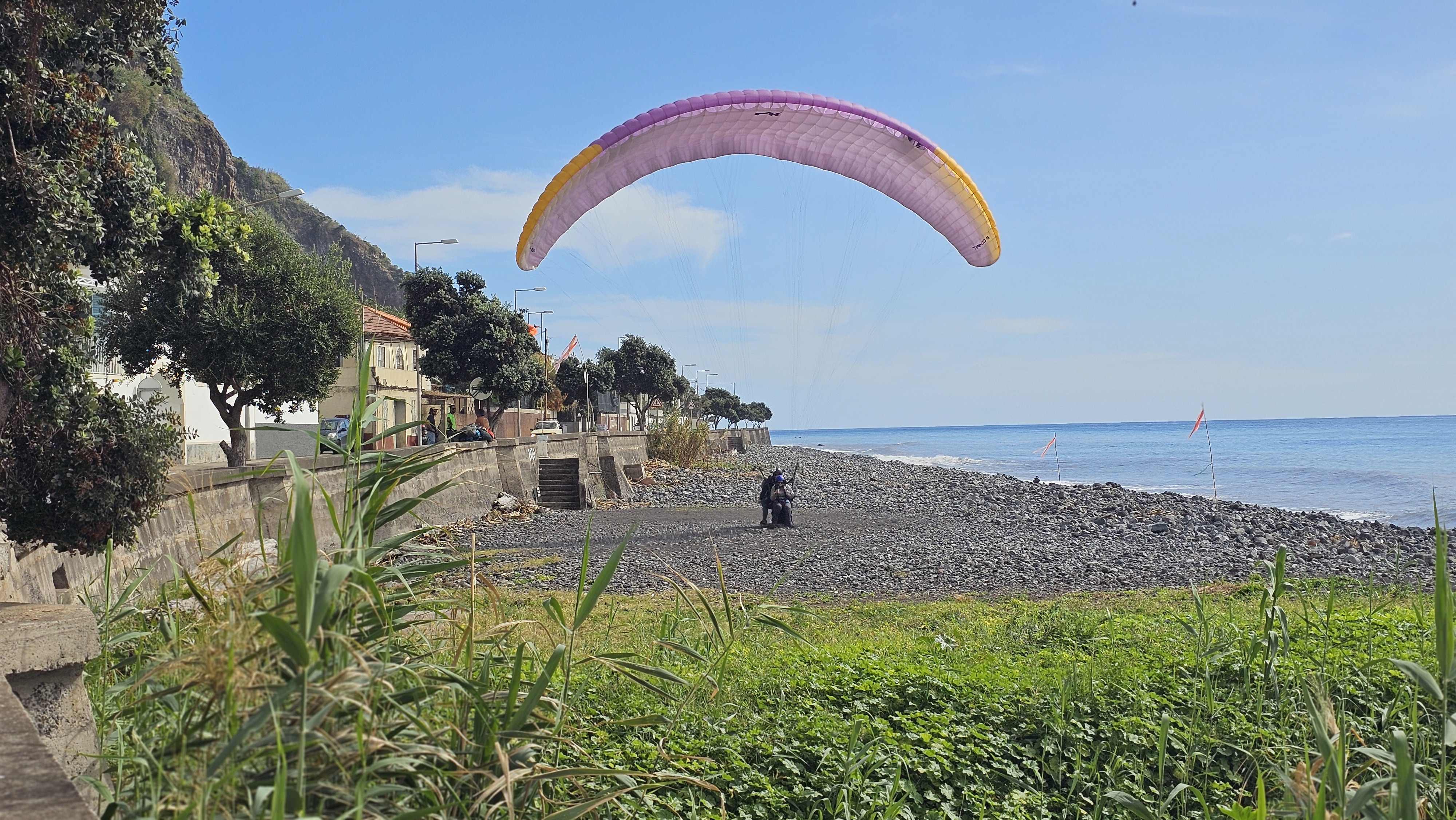 Über uns kreisen Paraglider, die ihre Passagiere sehr gezielt am sehr kleinen Landeplatz am Strand wieder zu Boden bringen.