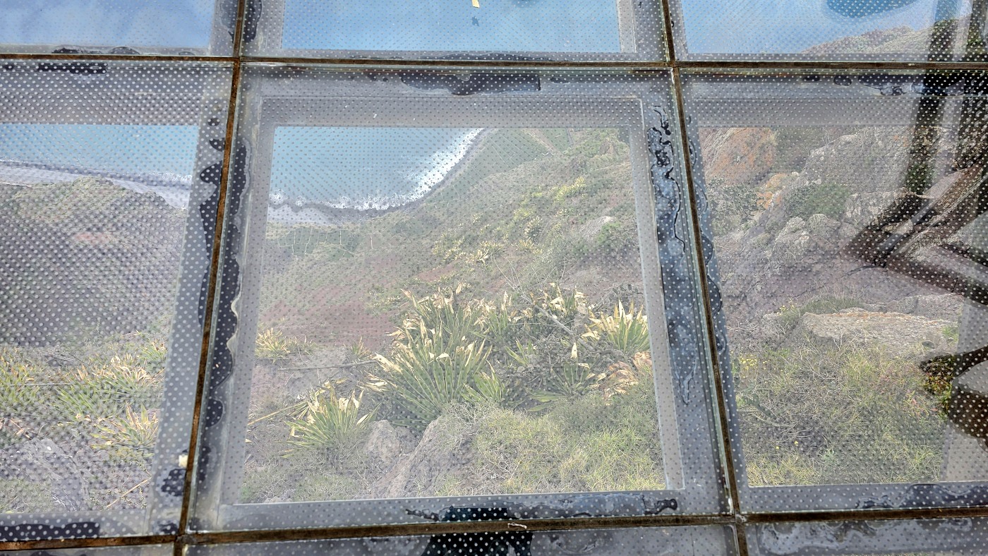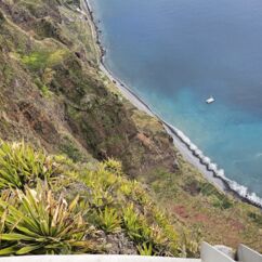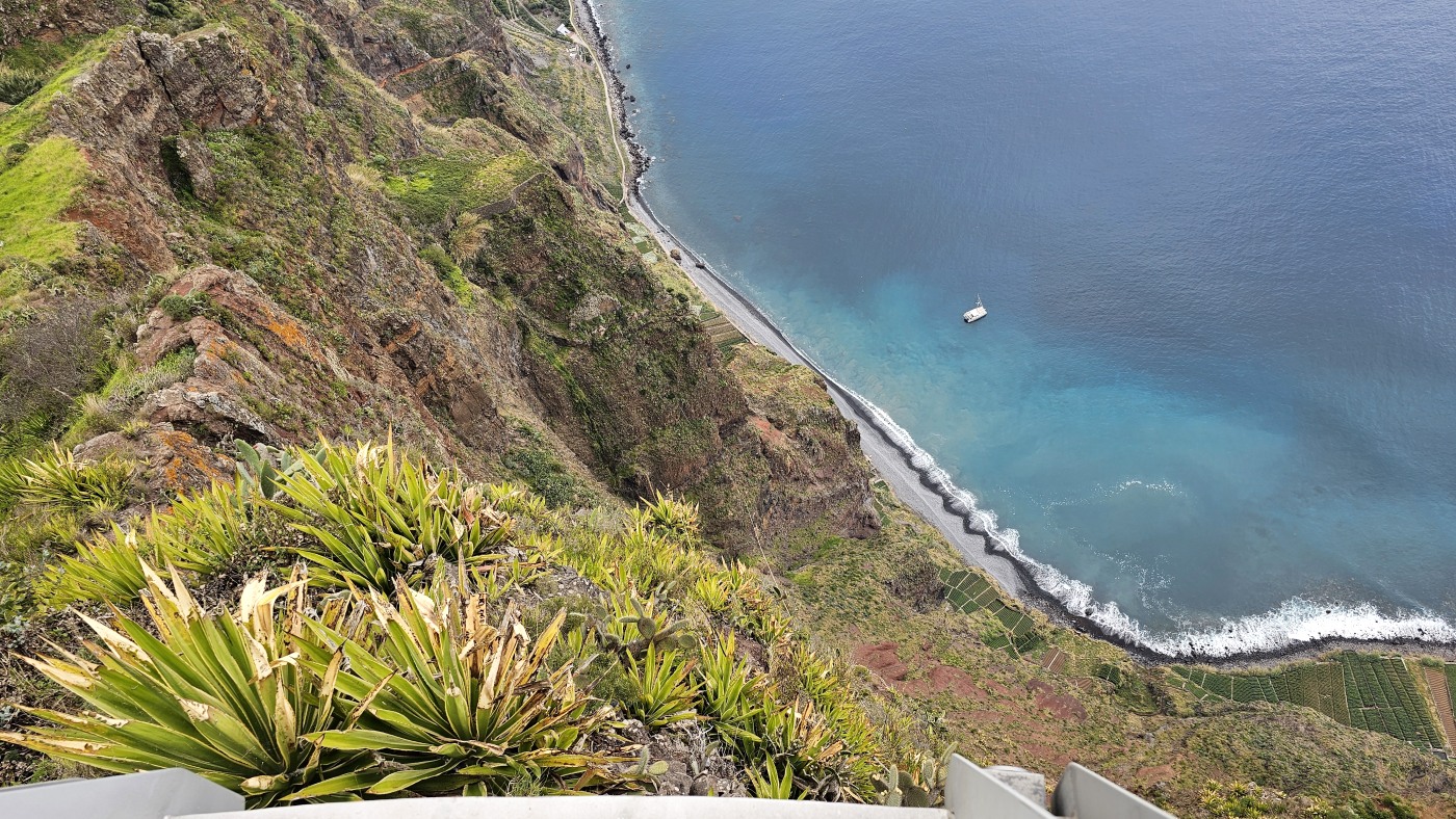 Nach der Rückfahrt mit der Seilbahn fühlen wir uns schnell wieder erschlagen vom Menschenrummel. Ein sehr kurzer Blick in die Gegend der Rua do Maria mit den verschiedenen kunstvollen Haustür-Bemalungen reicht uns angesichts der vielen Kellner, die uns zu den Tischen der Straßenlokale lotsen wollen. Wir starten gen Heimat Paul do Mar. Nur einen Abstecher machen wir noch auf dem Weg dorthin: Zum Cabo Girão Skywalk -die gläserne Aussichtsplattform auf einer der höchsten Steilküsten Europas muss man wohl einfach gesehen haben. Der Blick geht 580 Meter in die Tiefe.