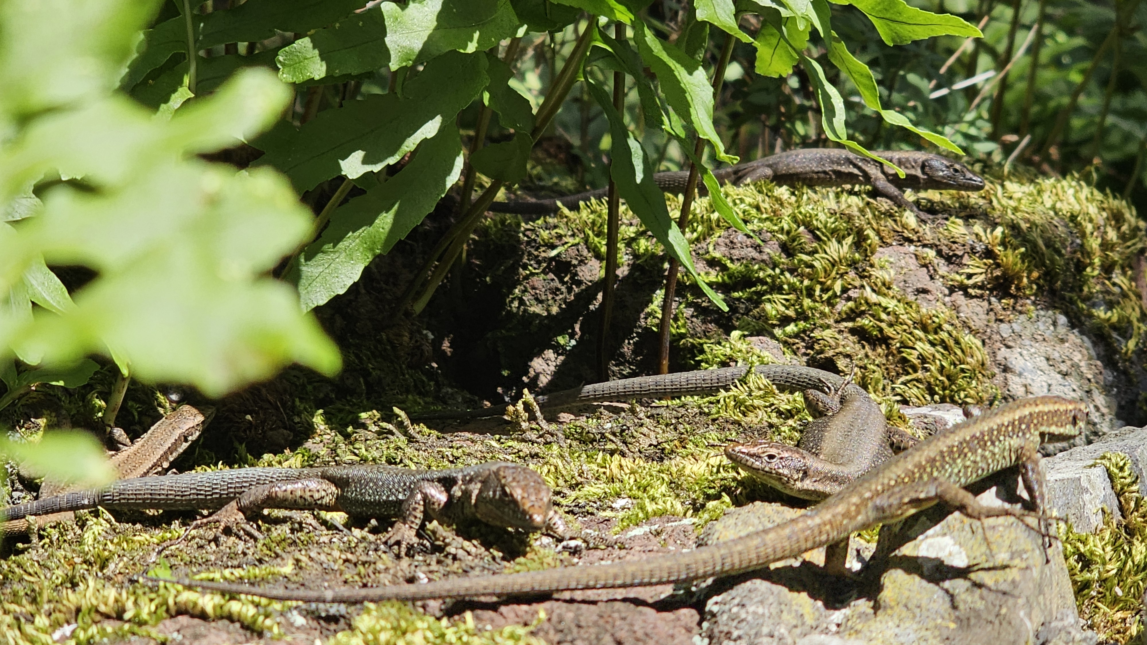 Die Lust verlieren wir nach 3/4 des Weges, machen auf einer Brücke Rast und kehren wieder um. Nach 316 Stufen Anstieg bis zur Raststätte gönnen wir uns einen Eiskaffee und genießen die Pause. Um uns herum huschen viele Eidechsen und Vögel. Die Finken sind hier so verfressen und zutraulich wie die Spatzen bei uns.