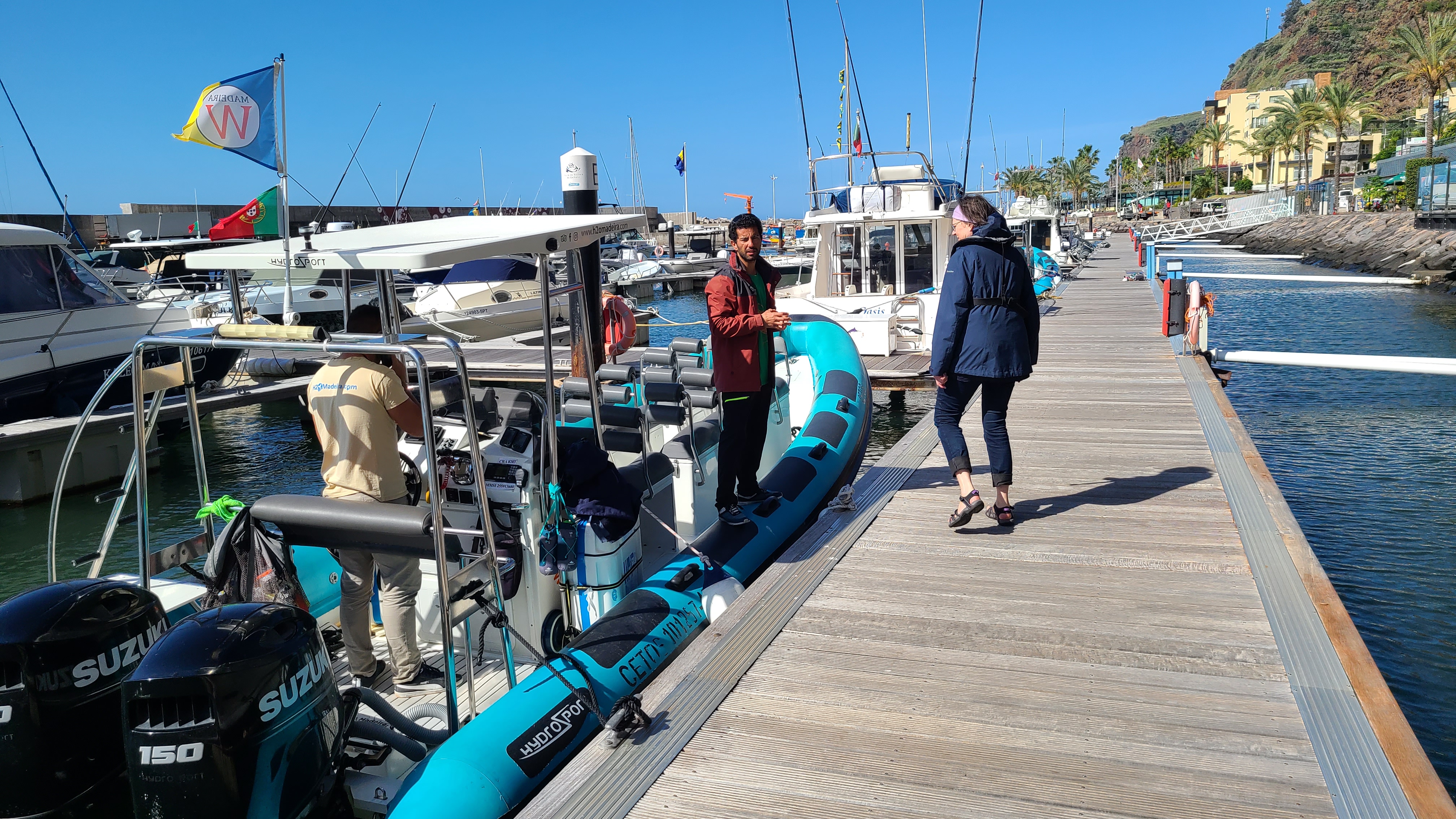 Mit dem Schnellboot geht es heute ab Calheta Richtung Meer. Die Fahrt allein ist ein Genuss.