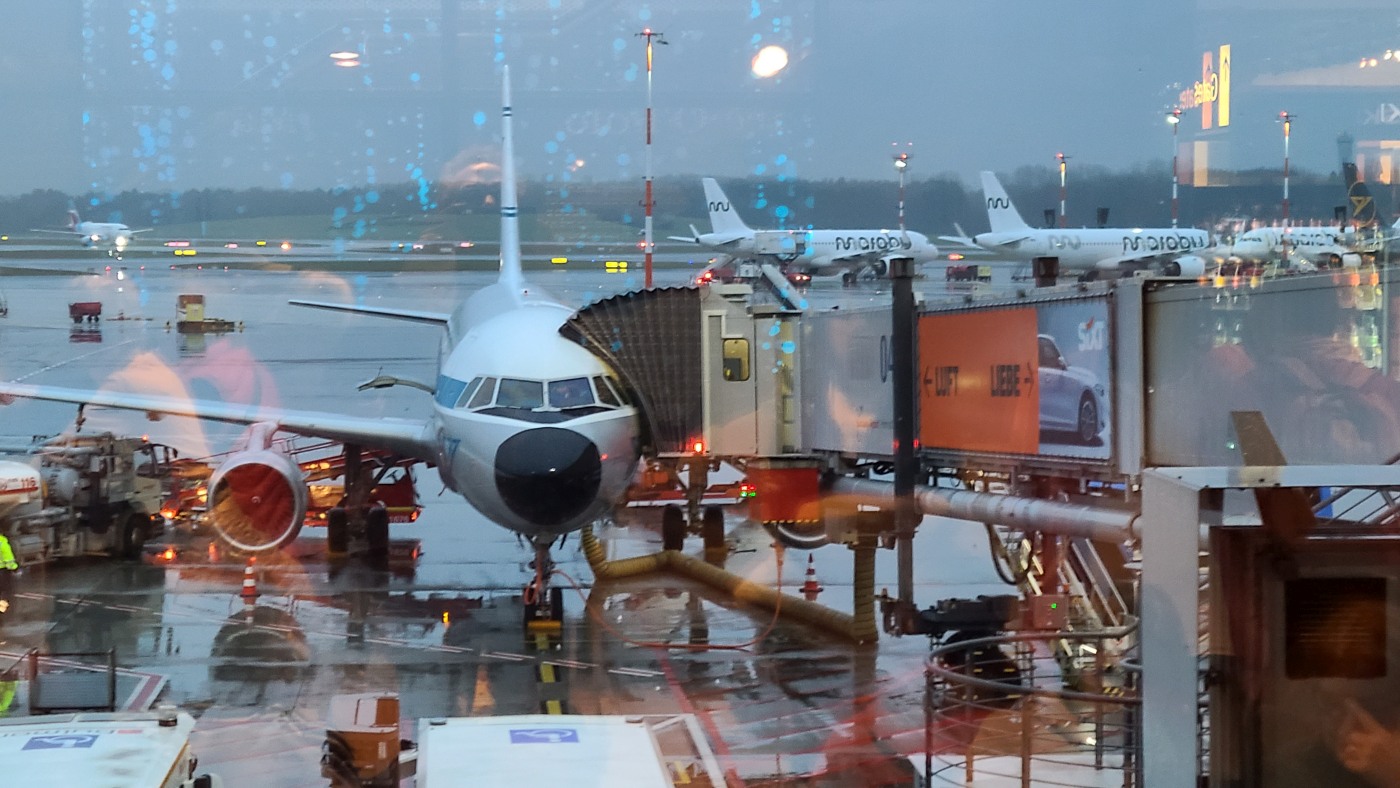Schon am frühen Morgen sitzen wir auf dem Hamburger Airport, schauen auf das regennasse Flugfeld und trinken unseren ersten Urlaubskaffee.