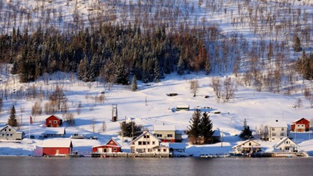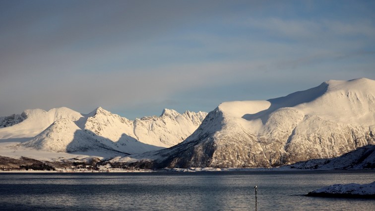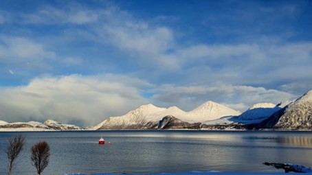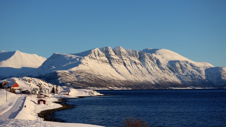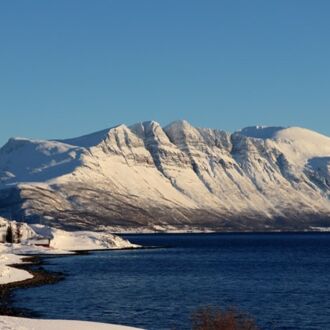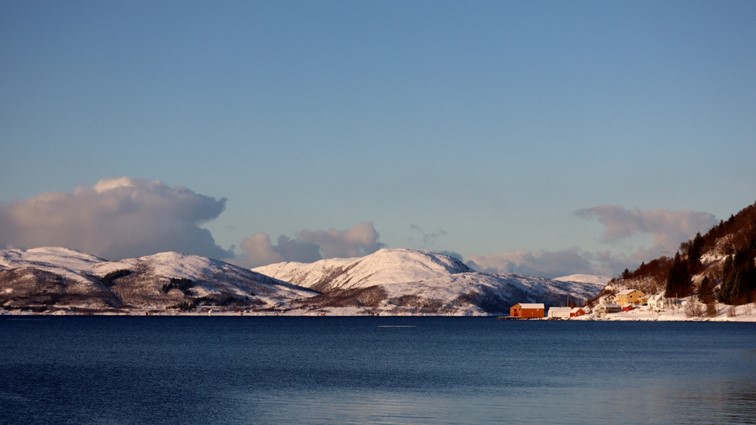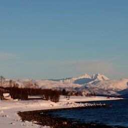 Das fast durchgehend sonnige Kvaløya im Süden kennen wir noch nicht. Dort ist nur derjenige im Schatten, der sich gegenüber der hohen Festlandberge aufhält. Dort wo die Sonne es auf der anderen Seite des Fjords noch nicht über die Berggipfel schafft.