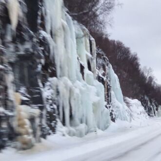Wir fahren die Nebenstrecke Route 395 und zwischen dem Zusammentreffen mit anderen Autos vergehen meist einige Kilometer. Die Strecke ist gut geräumt und mit der festgefahrenen Schneedecke – bei zwischenzeitlich -10°C – kommen unsere neuen Reifen sehr gut zurecht.