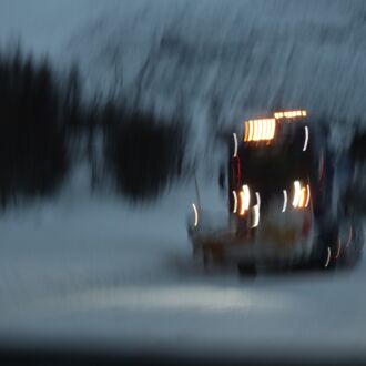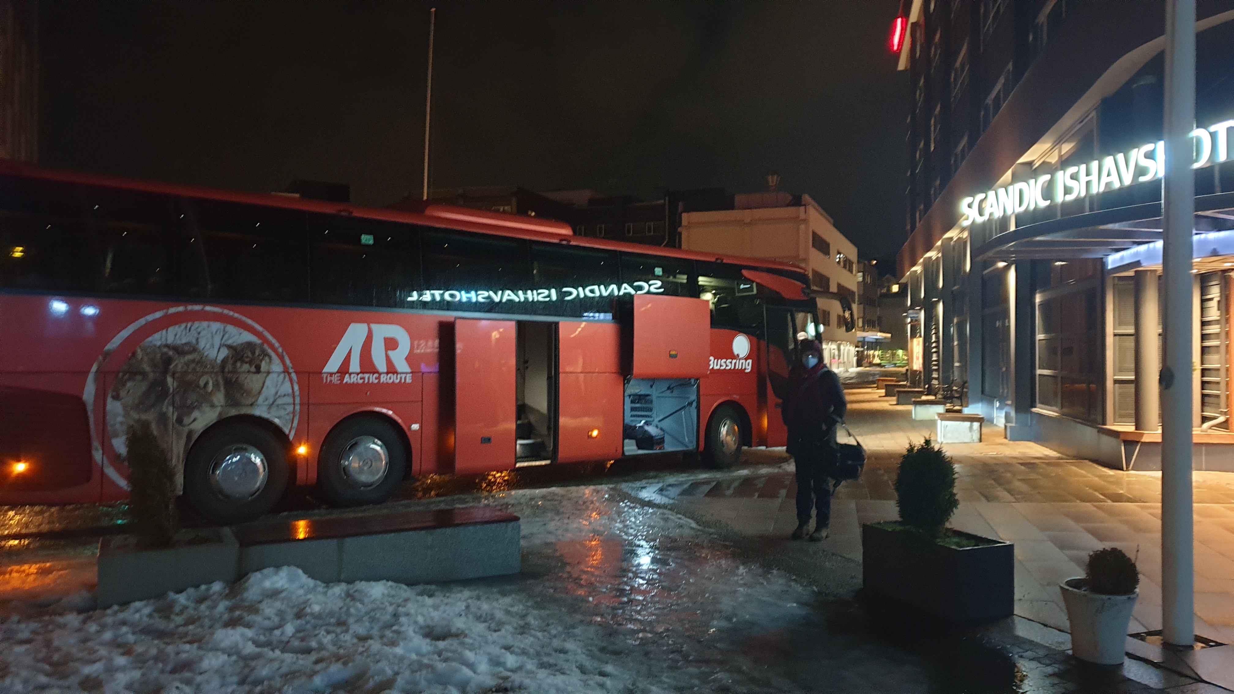 Um 3.00 Uhr sind wir aufgestanden, um 5.30 Uhr starten wir mit weiteren 22 Reisenden in einem Bus ab Tromsø Richtung Skjervøy. Das erste Mal seit Corona-Ausbruch, dass wir mit so vielen Leuten zusammen in einem Raum sind. Alle tragen mehr oder minder Maske und wir sowieso die guten Dräger FFP2-Masken.